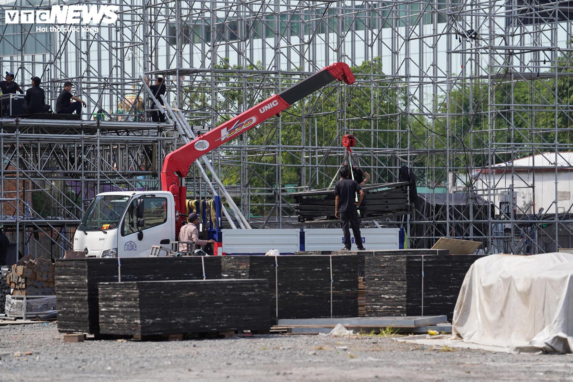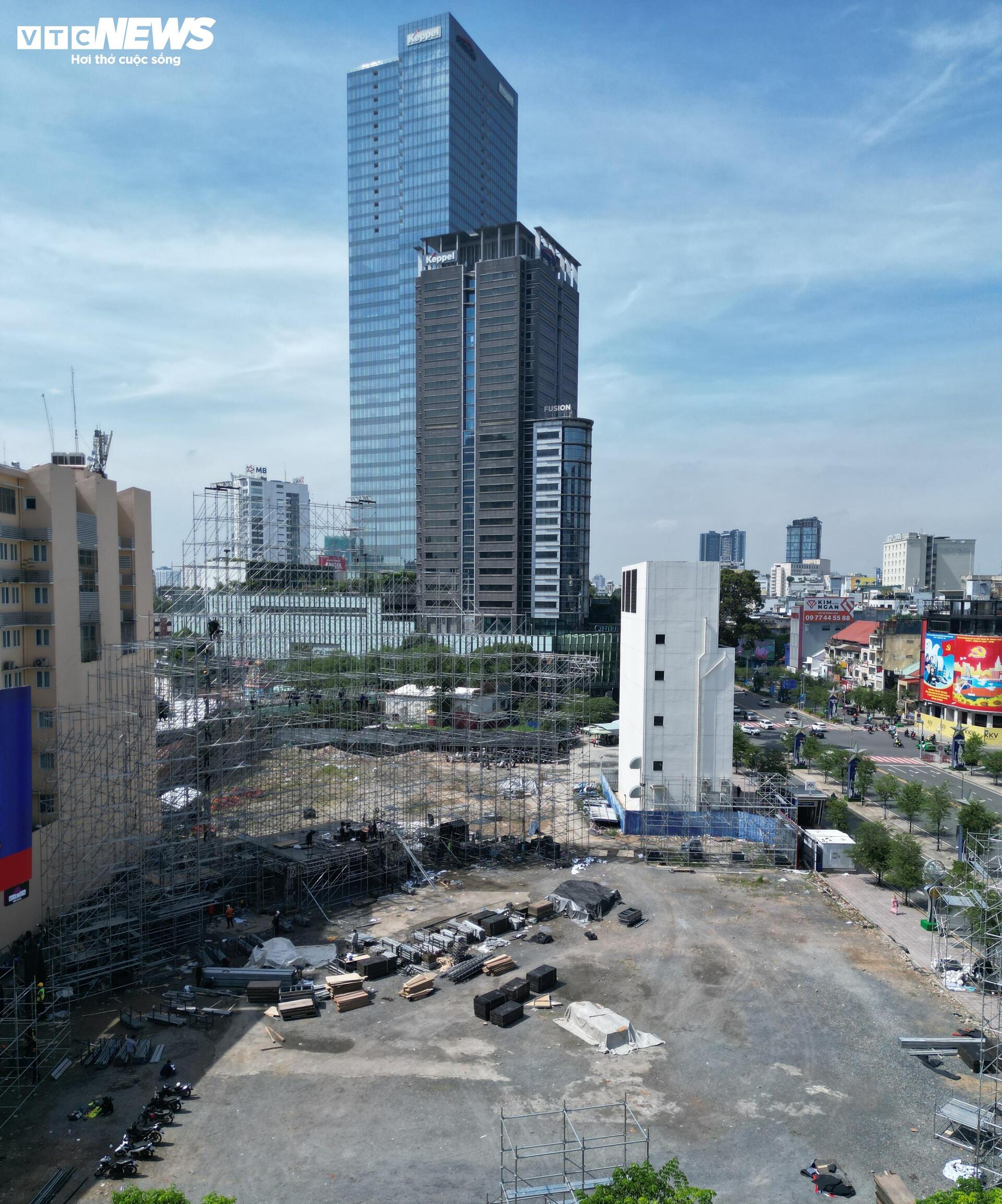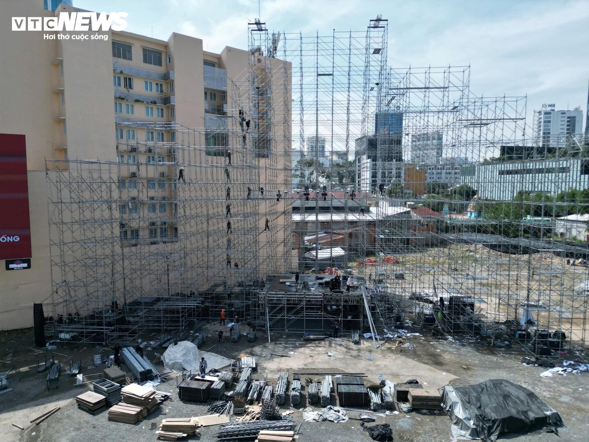 Ghi nhận của PV Báo Điện tử VTC News, khu đất vàng từng là Thương xá Tax - biểu tượng thương mại hơn 130 năm tuổi của Sài Gòn - hiện vẫn là bãi đất trống, chỉ có vài công nhân dựng rạp chuẩn bị cho một sự kiện ngắn ngày.