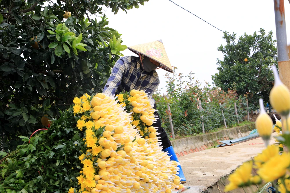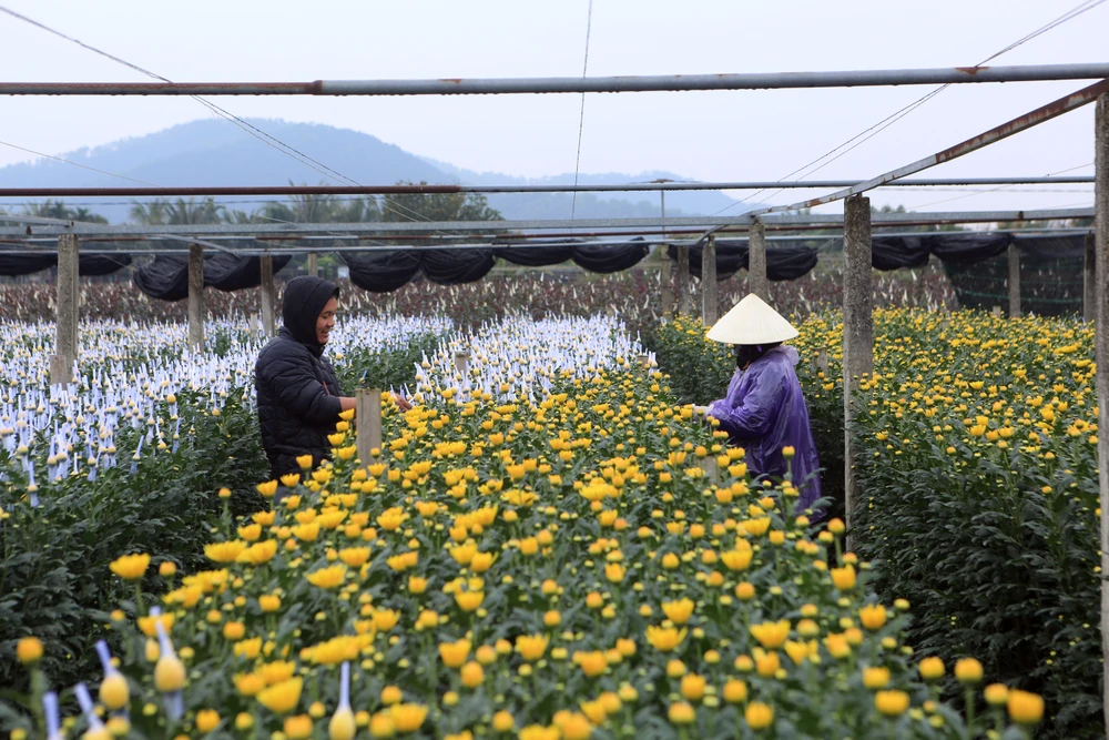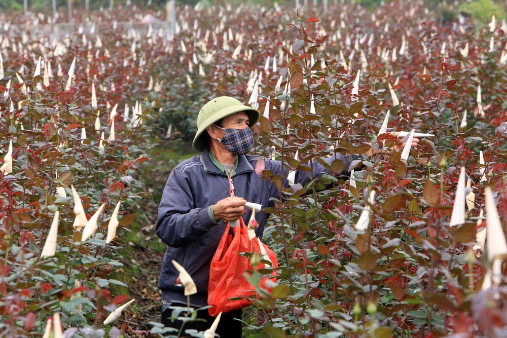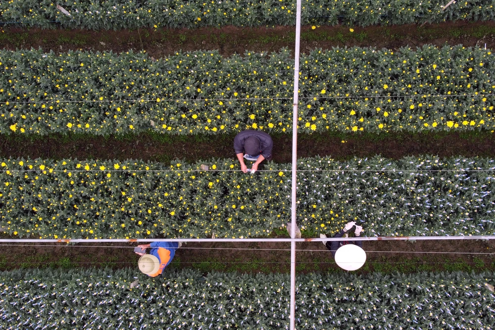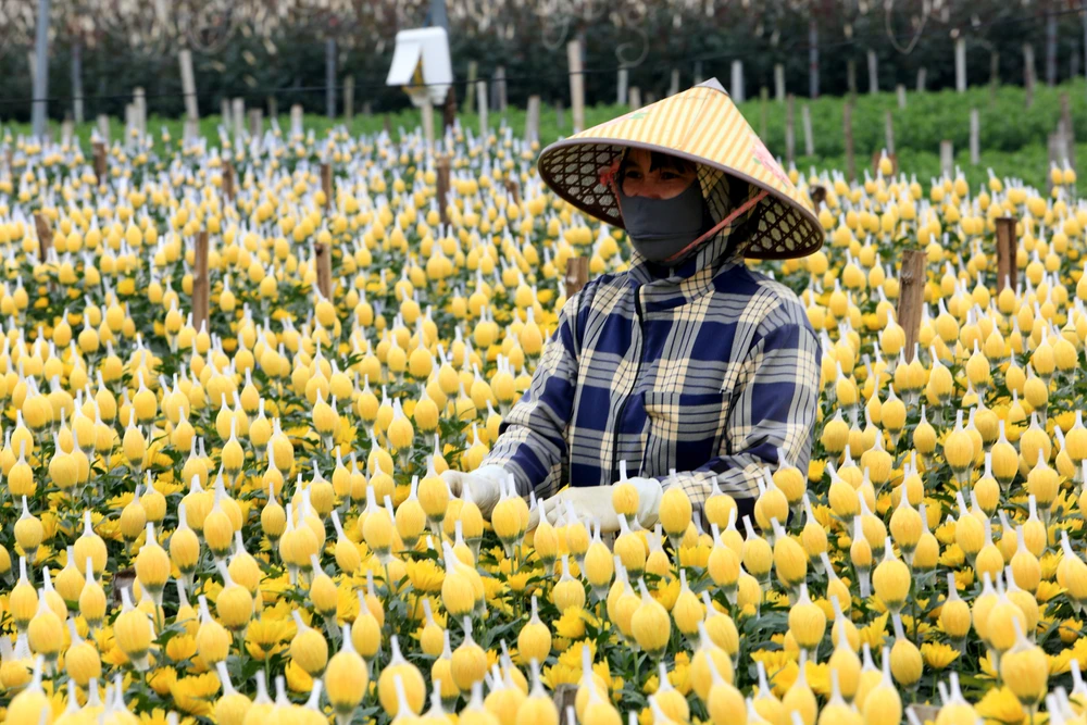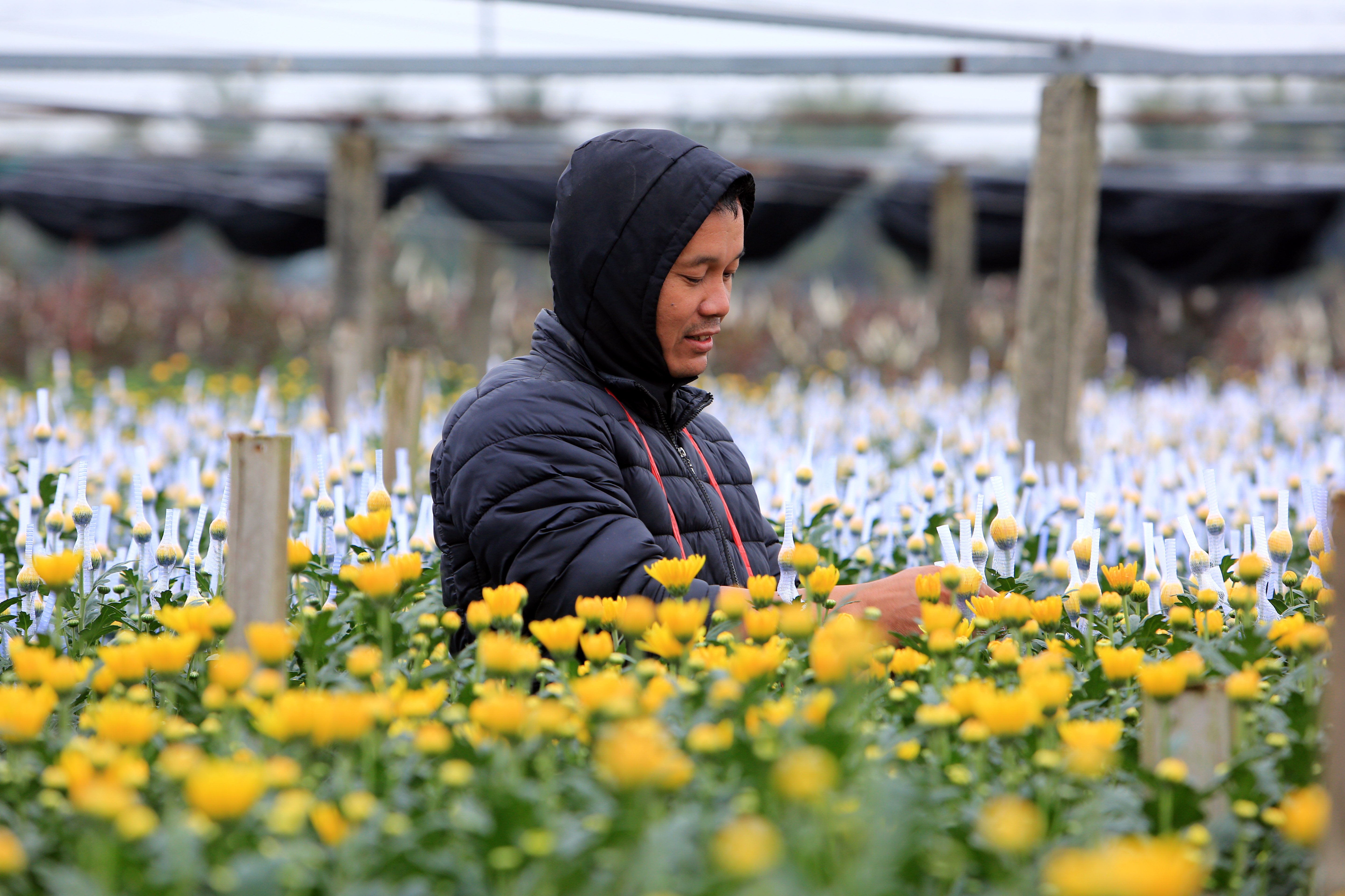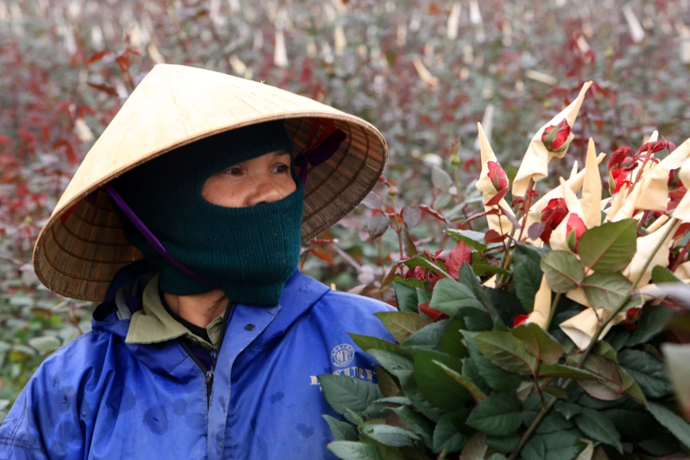 Cái lạnh buốt không làm chậm nhịp lao động, trái lại càng khiến người trồng hoa thêm cẩn trọng, nâng niu từng nụ hoa như giữ gìn thành quả của cả năm lao động.
