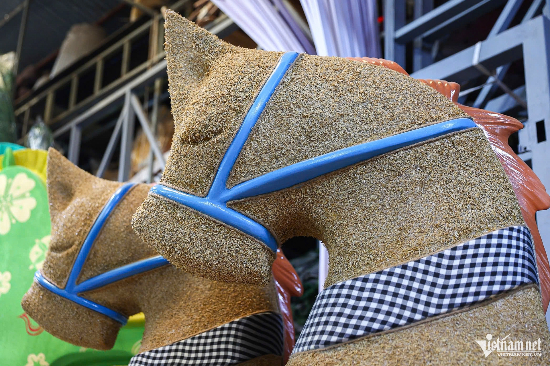 Theo nghệ nhân Văn Tòng, sau hơn một tháng thi công, mô hình linh vật ngựa đang dần hoàn thiện.