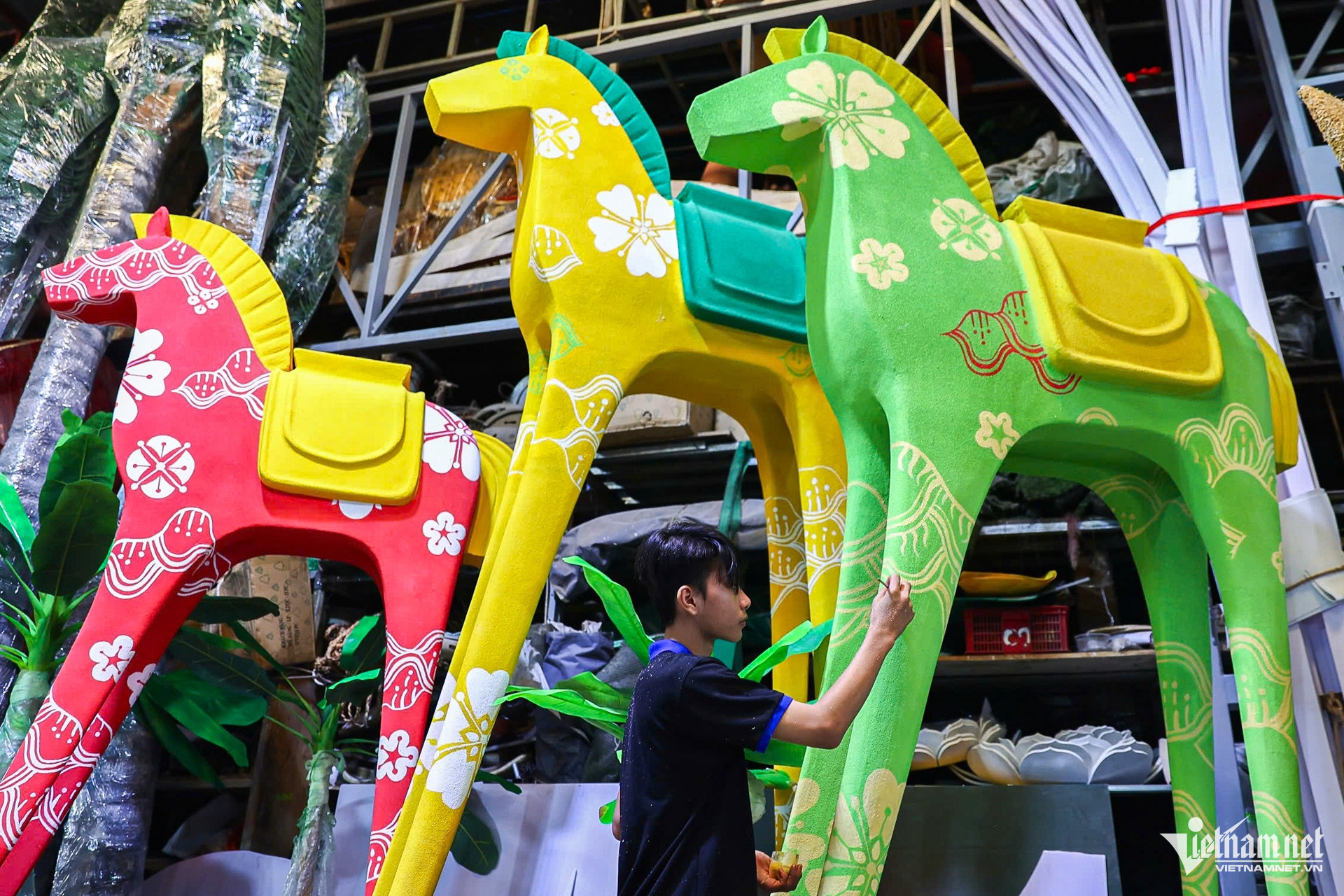 Ngoài mô hình ngựa khổng lồ, nhiều linh vật ngựa với kích thước và màu sắc khác nhau cũng đang được hoàn thiện để bố trí dọc tuyến đường hoa.