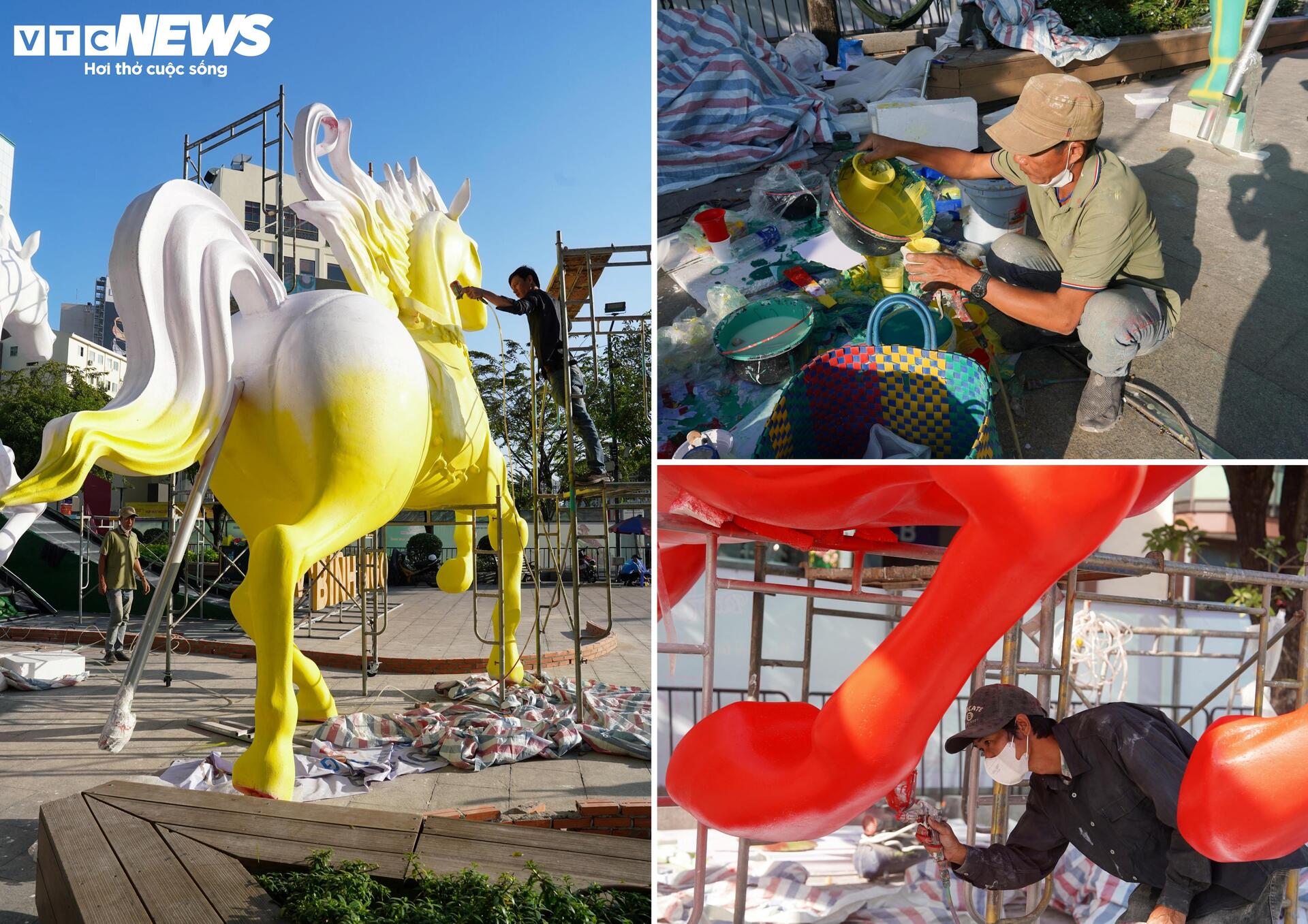Hiện các nghệ nhân đang tiếp tục xử lý lớp bề mặt, hoàn thiện màu sắc và các chi tiết trang trí cho linh vật. Song song đó, đội kỹ thuật tiến hành kiểm tra kết cấu, gia cố các mối nối nhằm đảm bảo an toàn trong suốt thời gian trưng bày.
