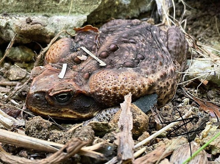 Kích thước khổng lồ so với các loài cóc khác. Cóc mía trưởng thành có thể nặng hơn 1 kg và dài tới 25 cm, trở thành “gã khổng lồ” trong họ lưỡng cư. Ảnh: Pinterest.
