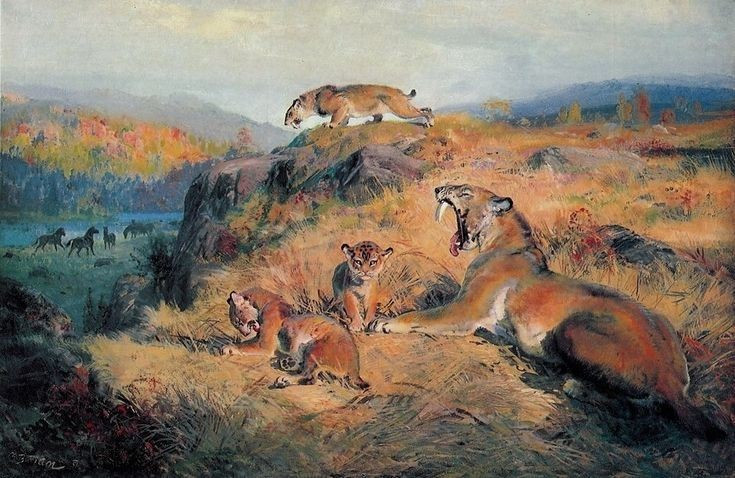 Chiến lược săn mồi theo bầy. Nhiều nhà cổ sinh vật học cho rằng Machairodus có thể săn theo nhóm giống sư tử hiện đại, nhờ vào dấu tích hóa thạch tập trung. Ảnh: Pinterest.