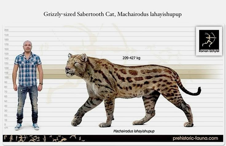 Thân hình đồ sộ và cơ bắp. Machairodus có thể nặng tới 400 kg, gấp rưỡi một con sư tử hiện đại. Thân hình thấp, vạm vỡ và vai phát triển giúp nó quật ngã con mồi chỉ bằng một cú vồ. Ảnh: Pinterest.