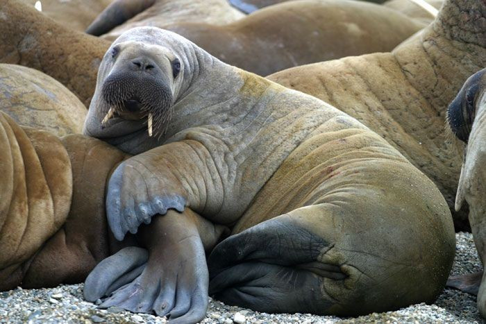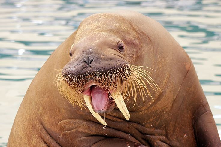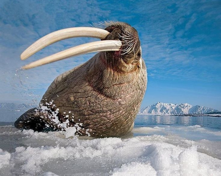 Ngà dài có thể dài 1 mét. Cặp ngà của hải mã dùng để tự vệ, đánh dấu thứ bậc và giúp chúng kéo mình lên các tảng băng. Ảnh: Pinterest.