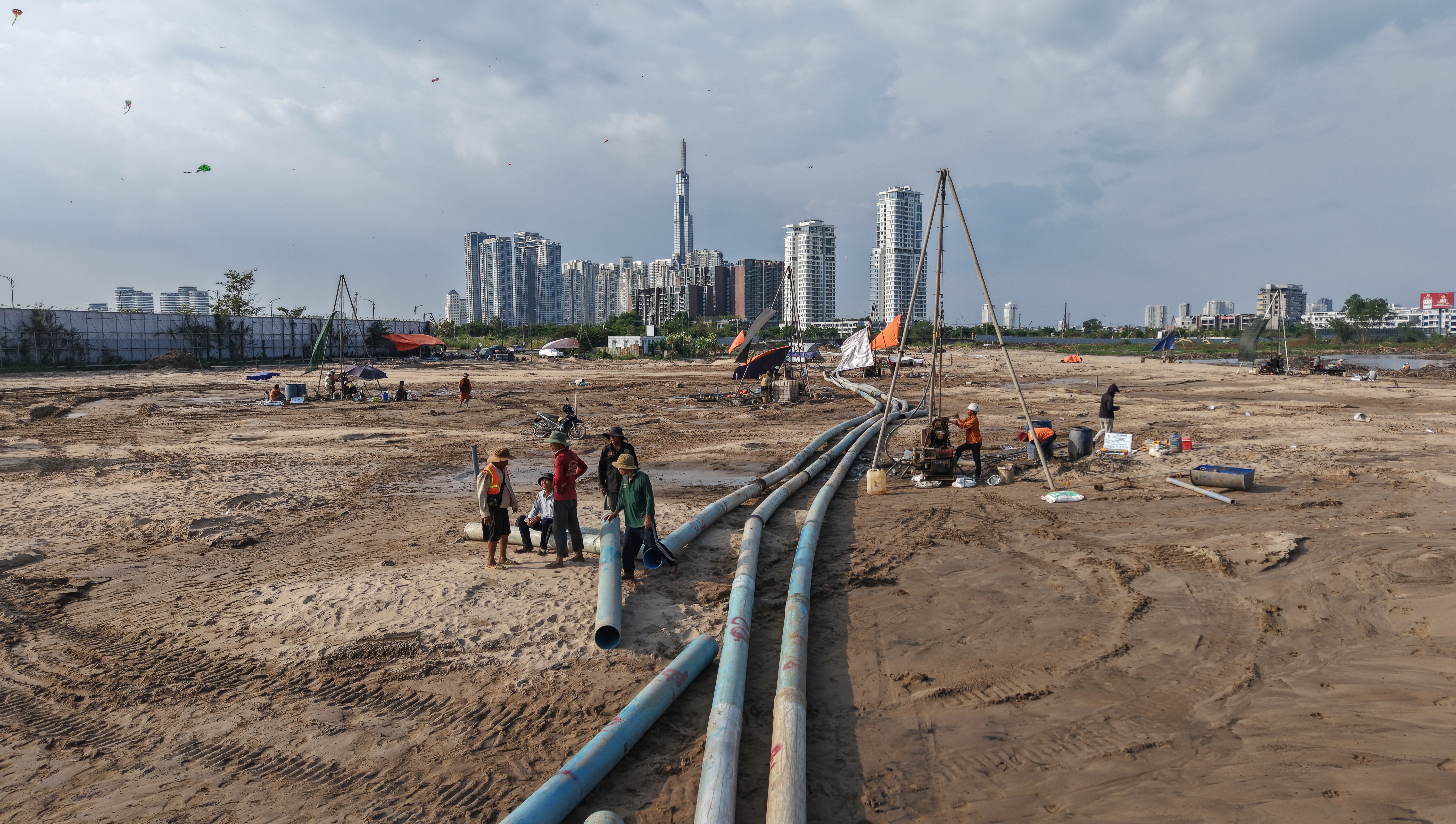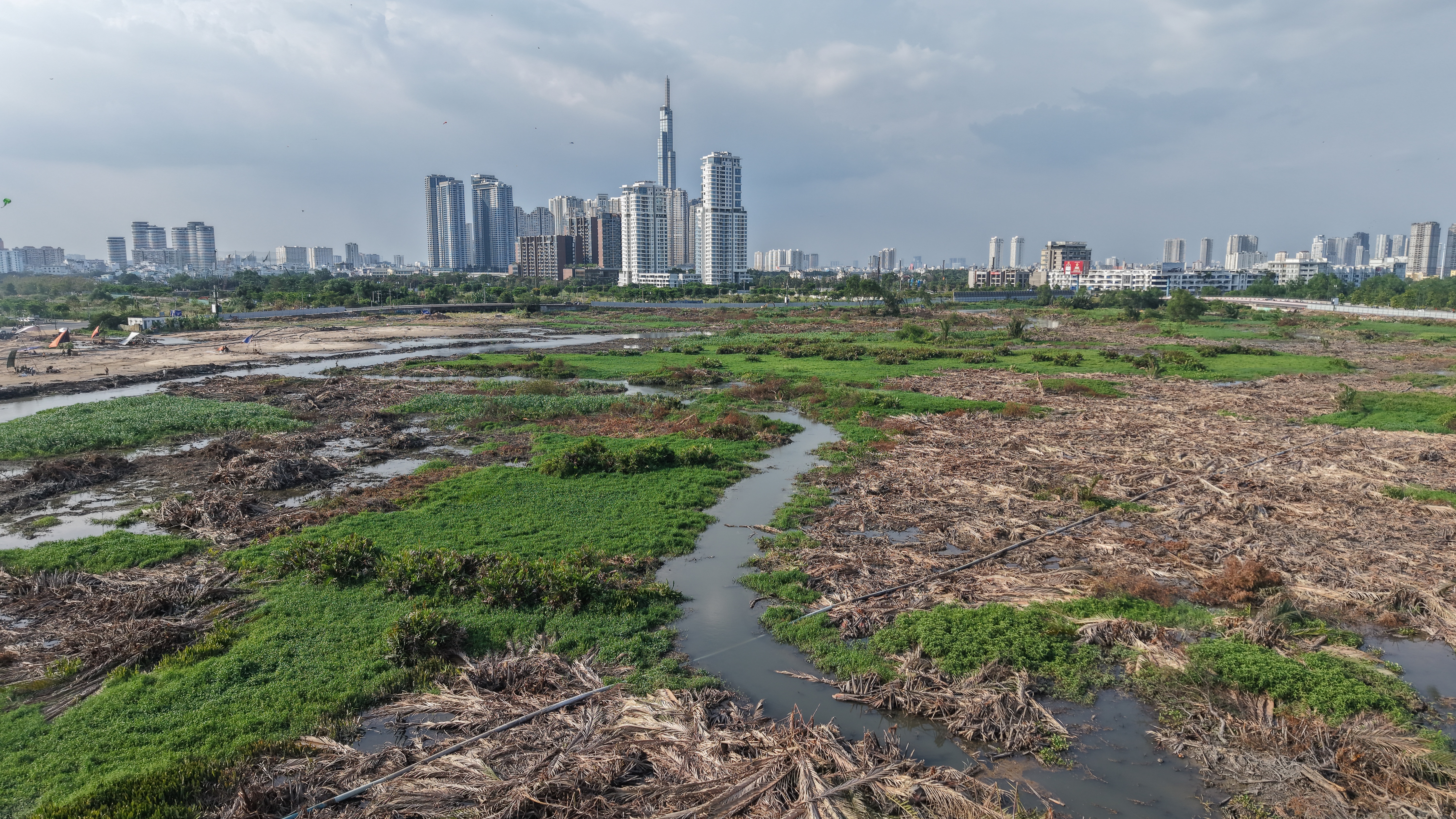 Khu đất dự kiến xây dựng ga Thủ Thiêm, tuyến được định hướng kéo dài đến sân bay Long Thành, hình thành tuyến đường sắt Thủ Thiêm - Long Thành trong tương lai.