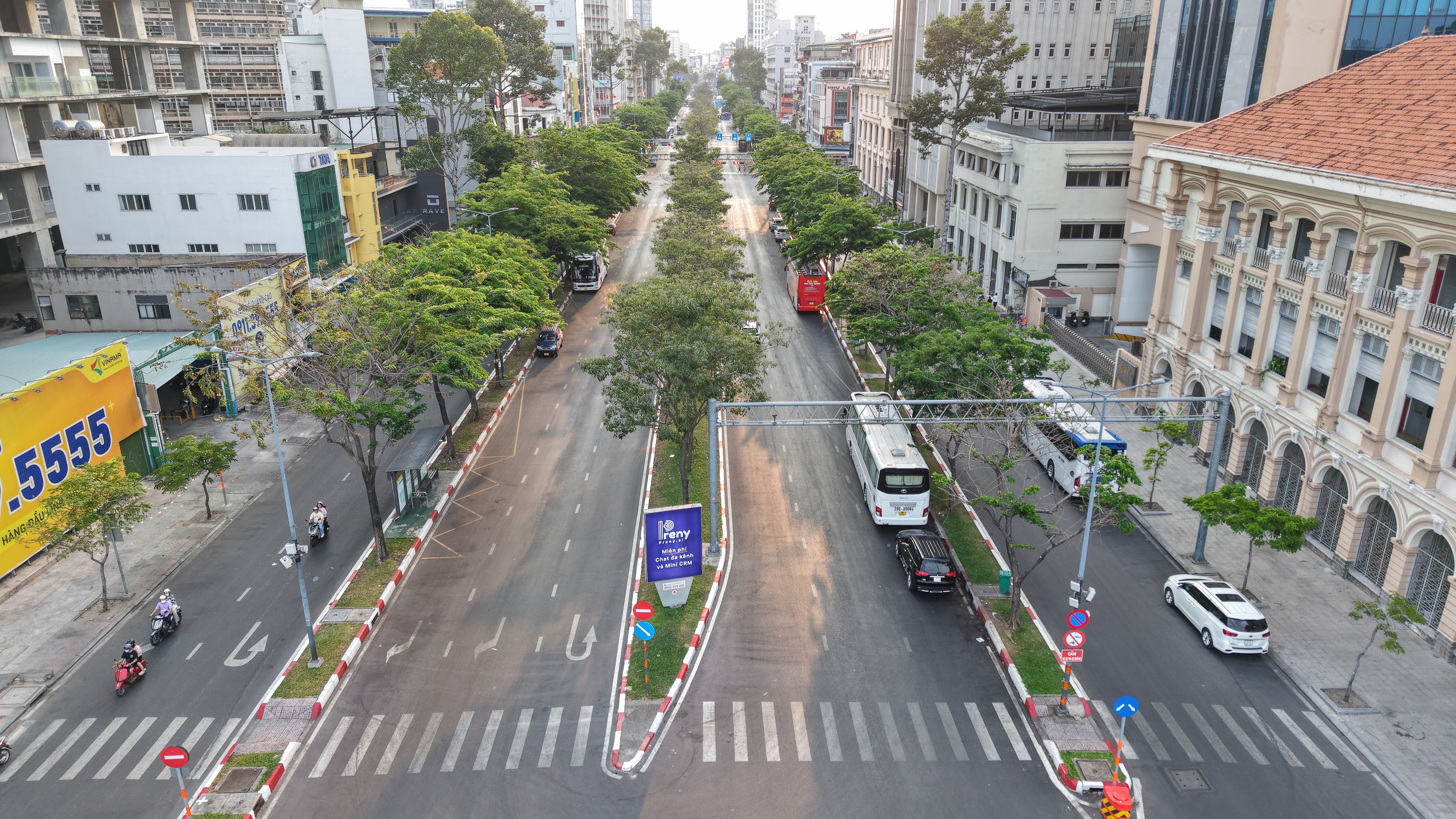 Từ ga Bến Thành, tàu đi ngầm theo trục Hàm Nghi (phường Sài Gòn), hướng về khu đô thị mới Thủ Thiêm (phường An Khánh).