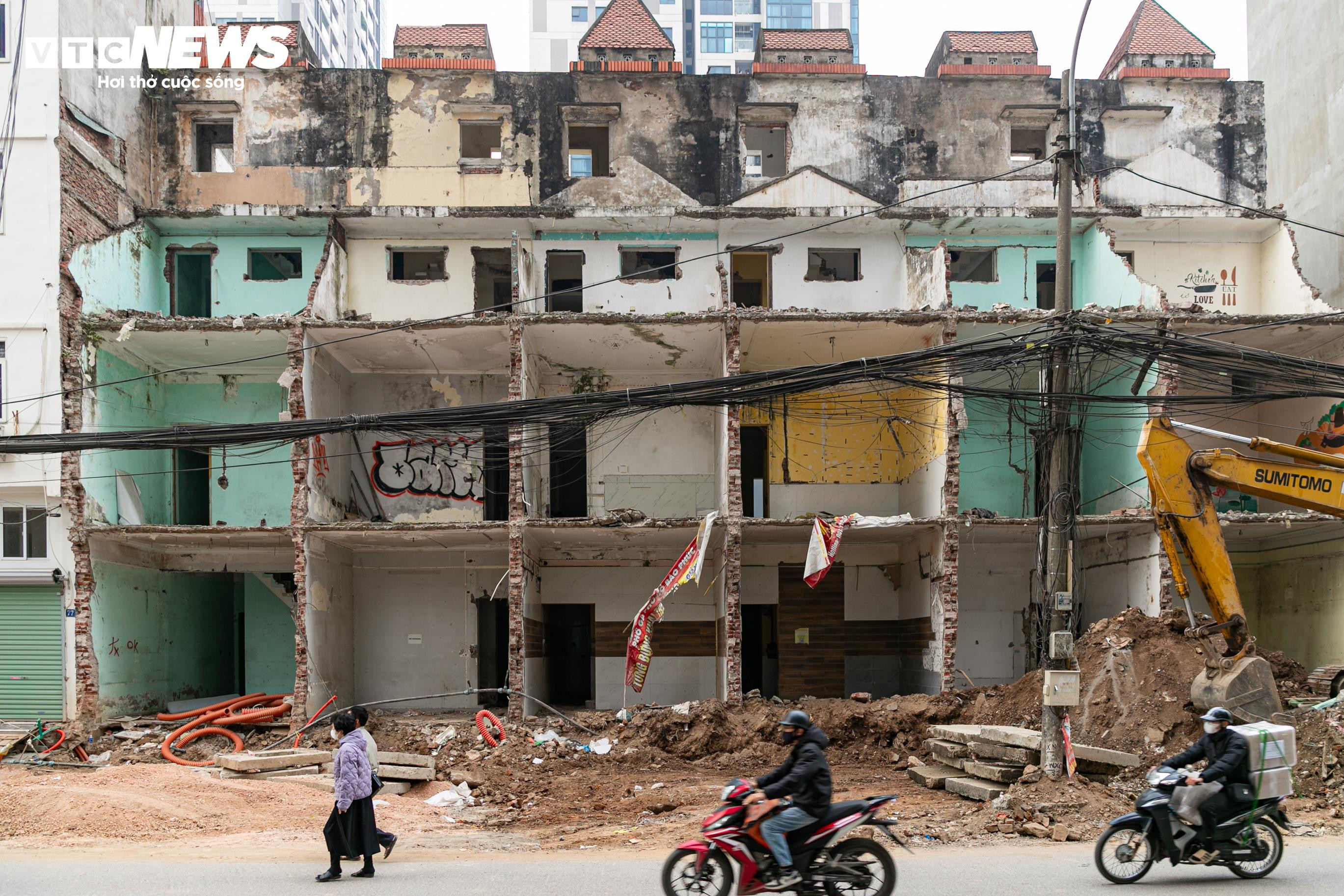 Nhiều công trình đã được phá dỡ để phục vụ giải phóng mặt bằng, song hiện trường vẫn còn nham nhở, chưa được hoàn thiện.