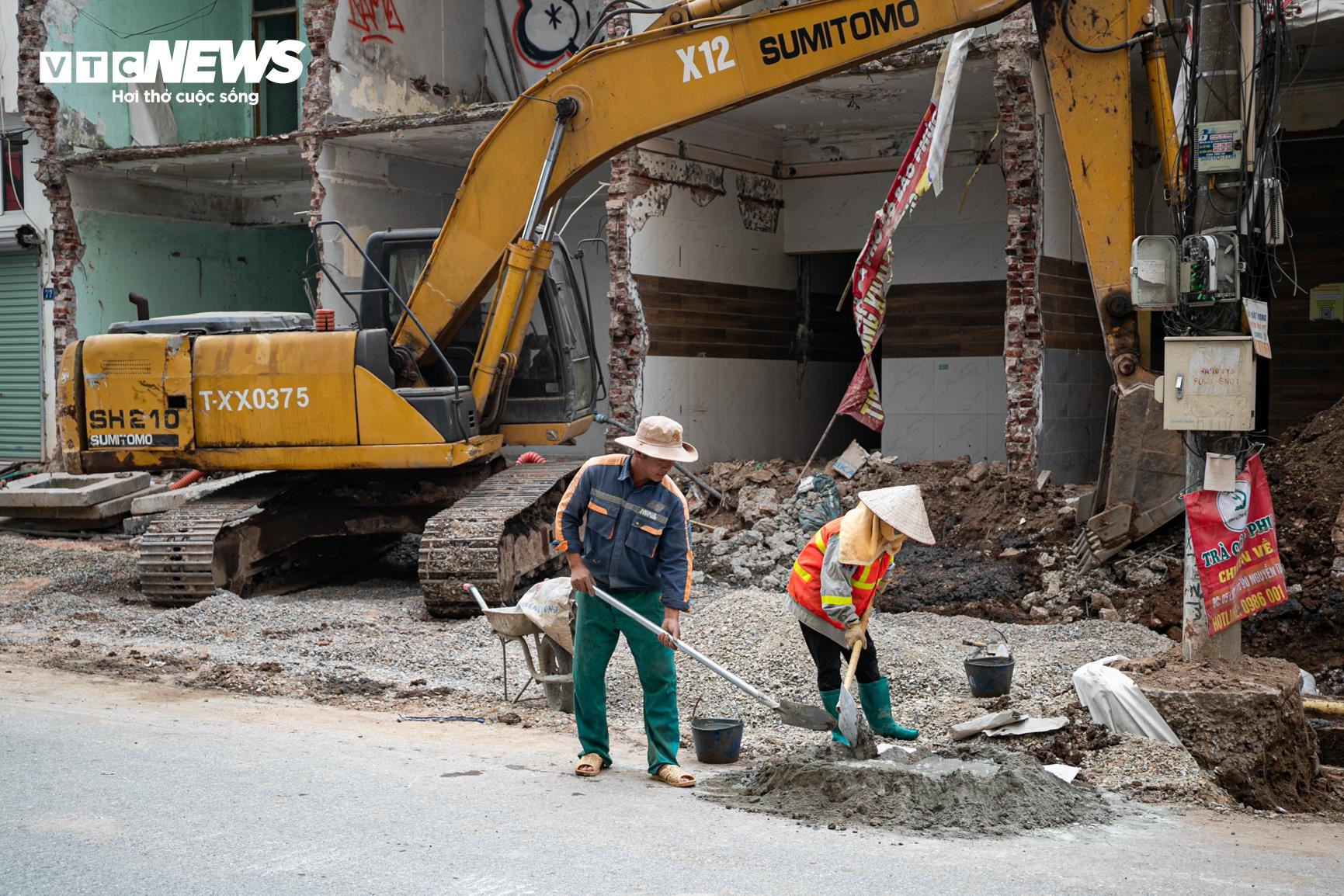 Trên công trường chỉ lác đác vài công nhân và thiết bị máy móc thi công.