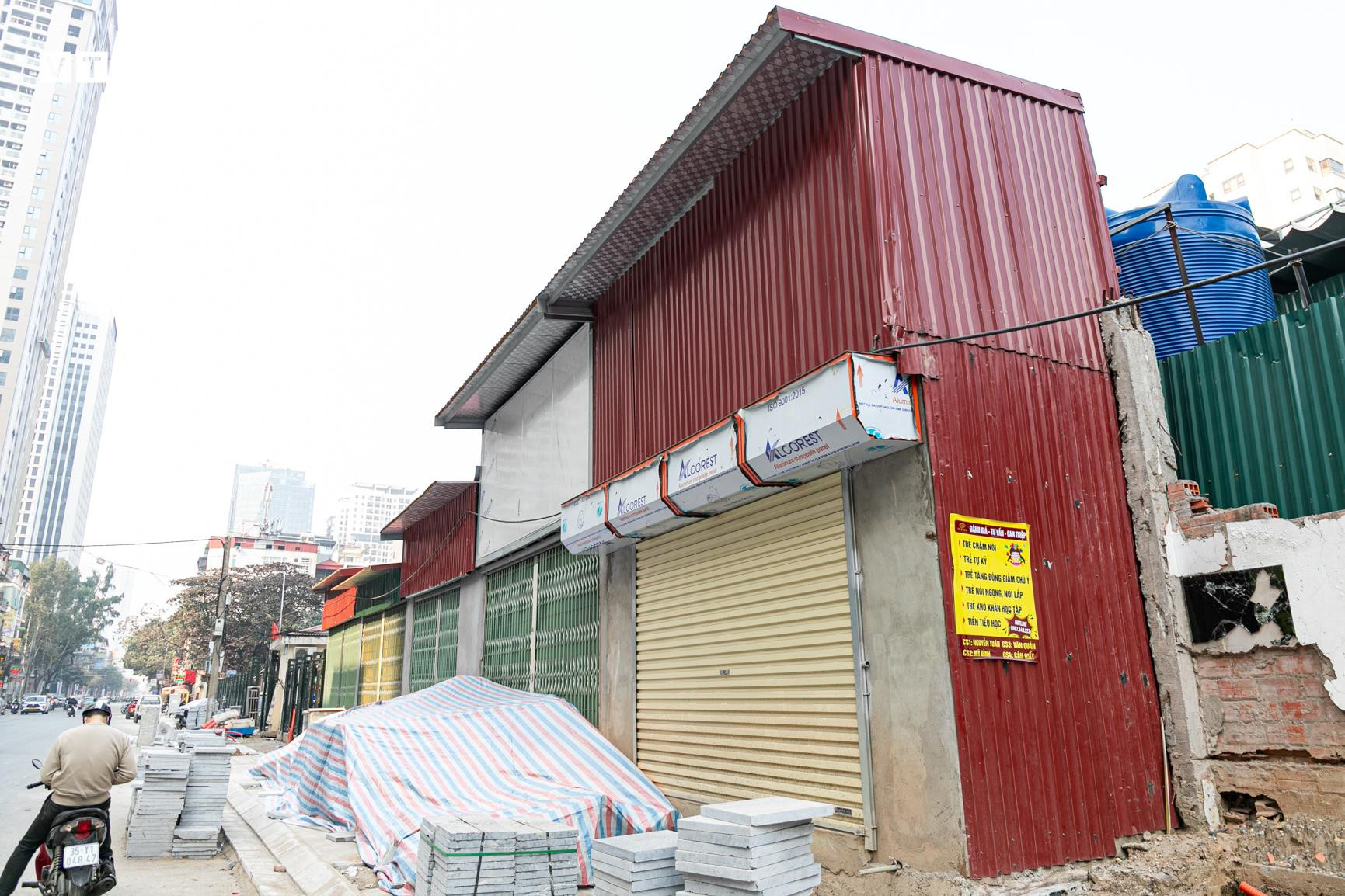 Sau khi tháo dỡ rào tôn, dọc tuyến đường Nguyễn Tuân mở rộng xuất hiện hàng loạt công trình “siêu mỏng, siêu méo” với diện tích chỉ 6-8m², quây tôn, thậm chí cao 2 tầng, gây mất mỹ quan đô thị trên trục đường mới mở rộng.