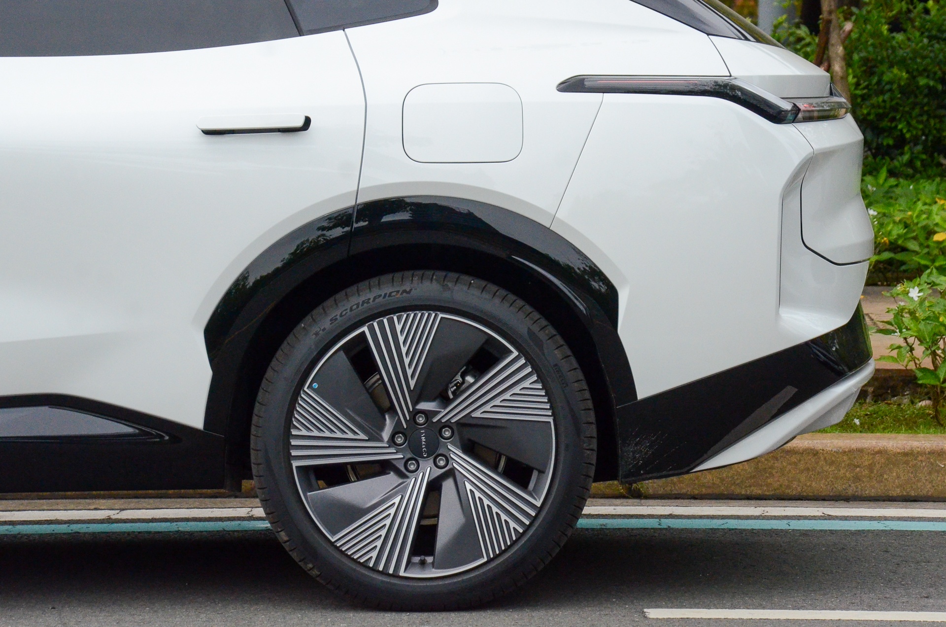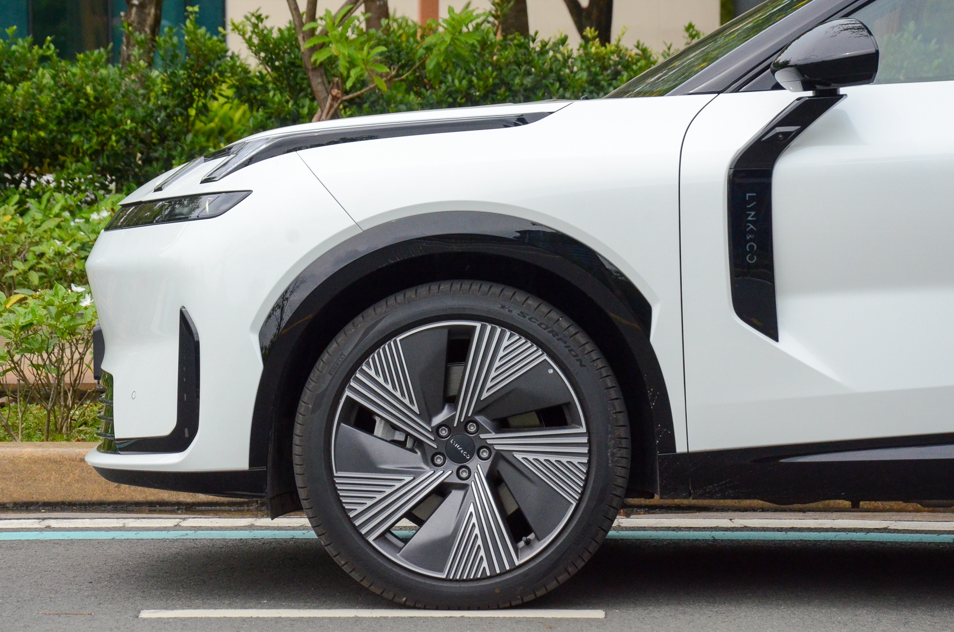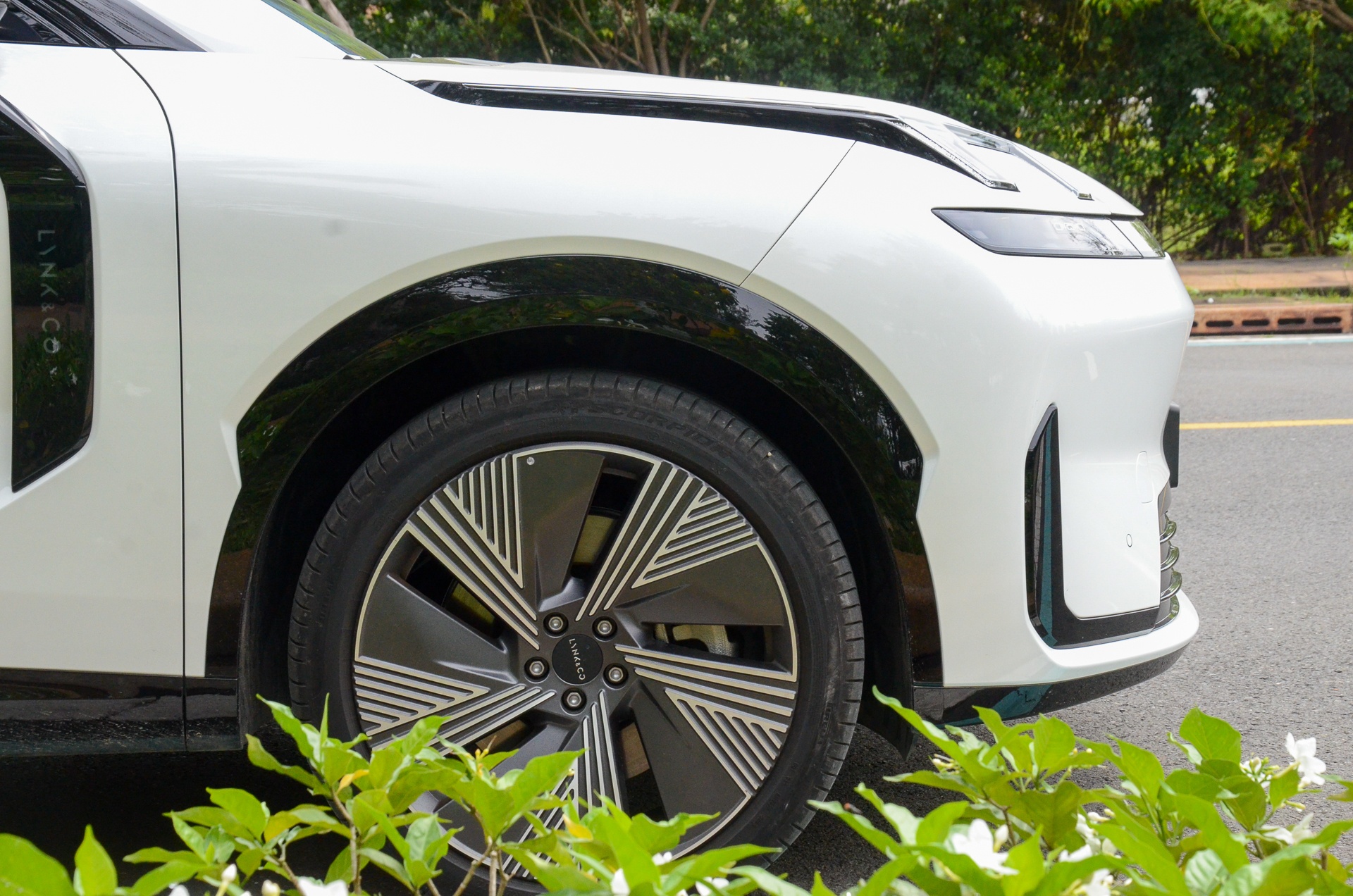 Mâm xe khí động học, đường kính 19 inch hoặc 21 inch tùy phiên bản. Ở phiên bản Halo cao cấp nhất, Lynk & Co 08 sử dụng mâm 21 inch kèm bộ lốp thông số 255/40.