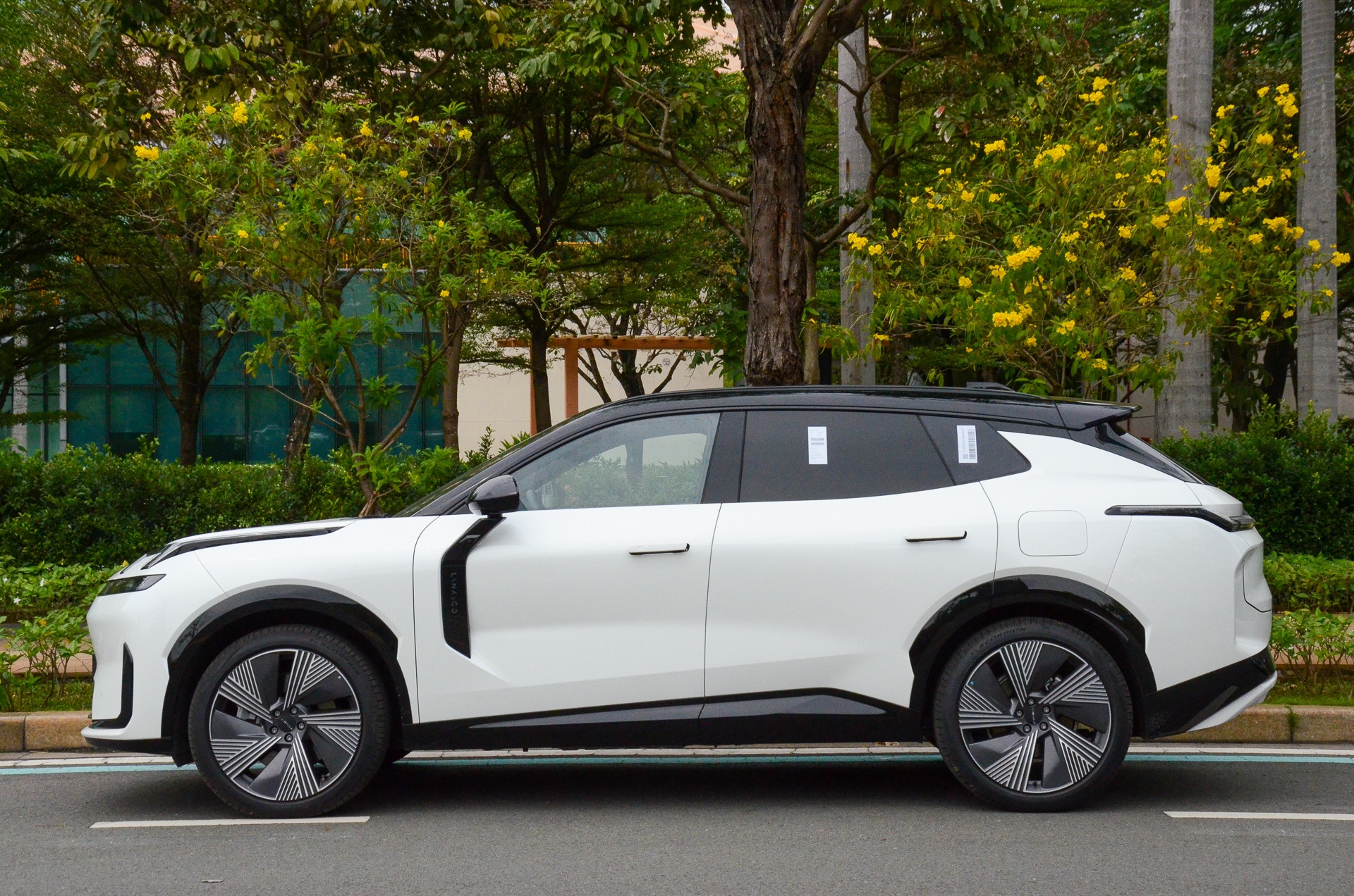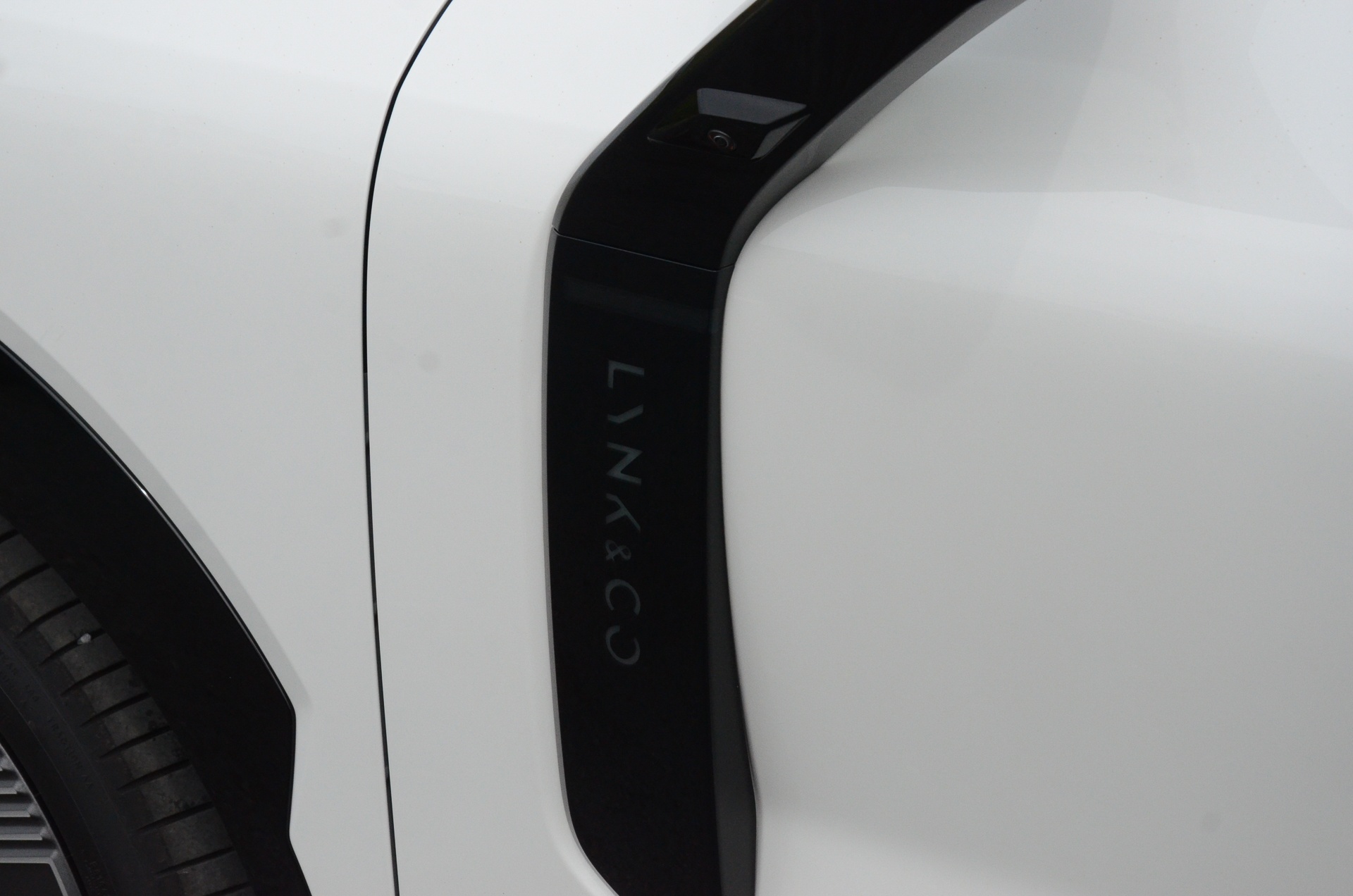 Một vài chi tiết điểm nhấn khác ở ngoại hình Lynk & Co 08 gồm tay nắm cửa ẩn hay ốp hông tích hợp bệ đỡ gương chiếu hậu màu đen có tên thương hiệu bên trong.