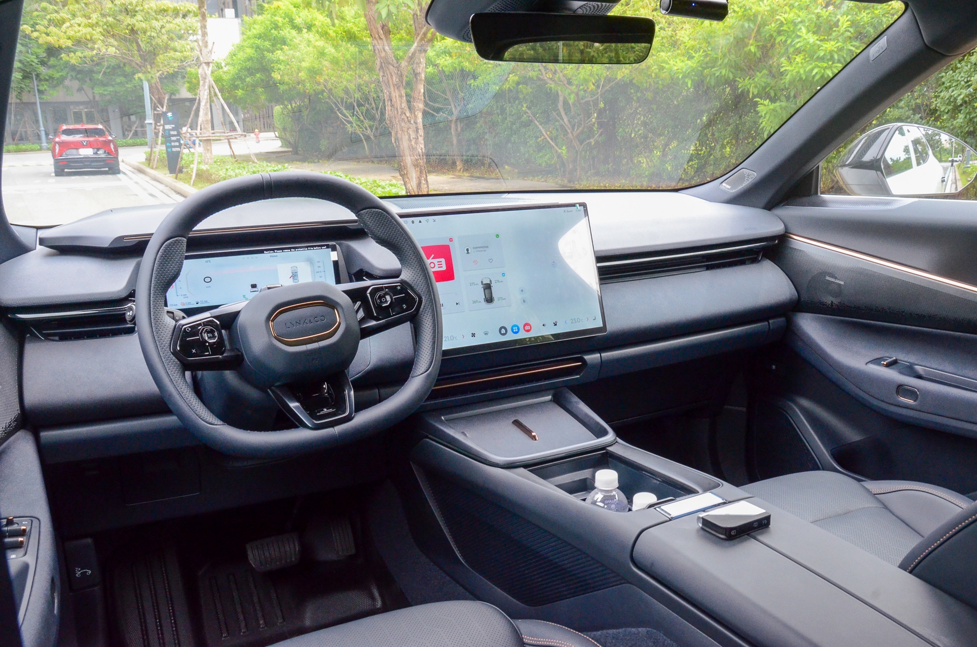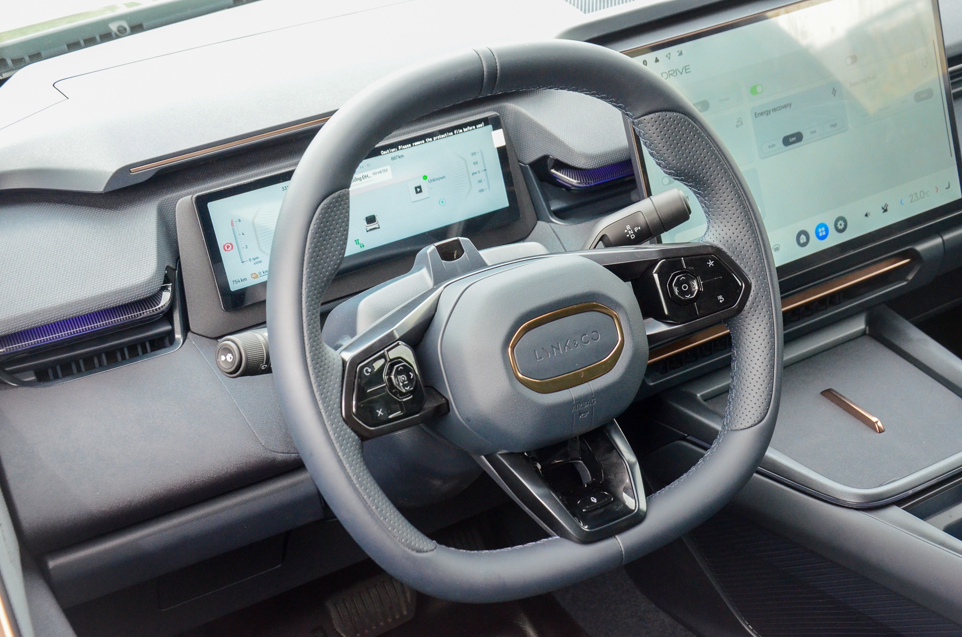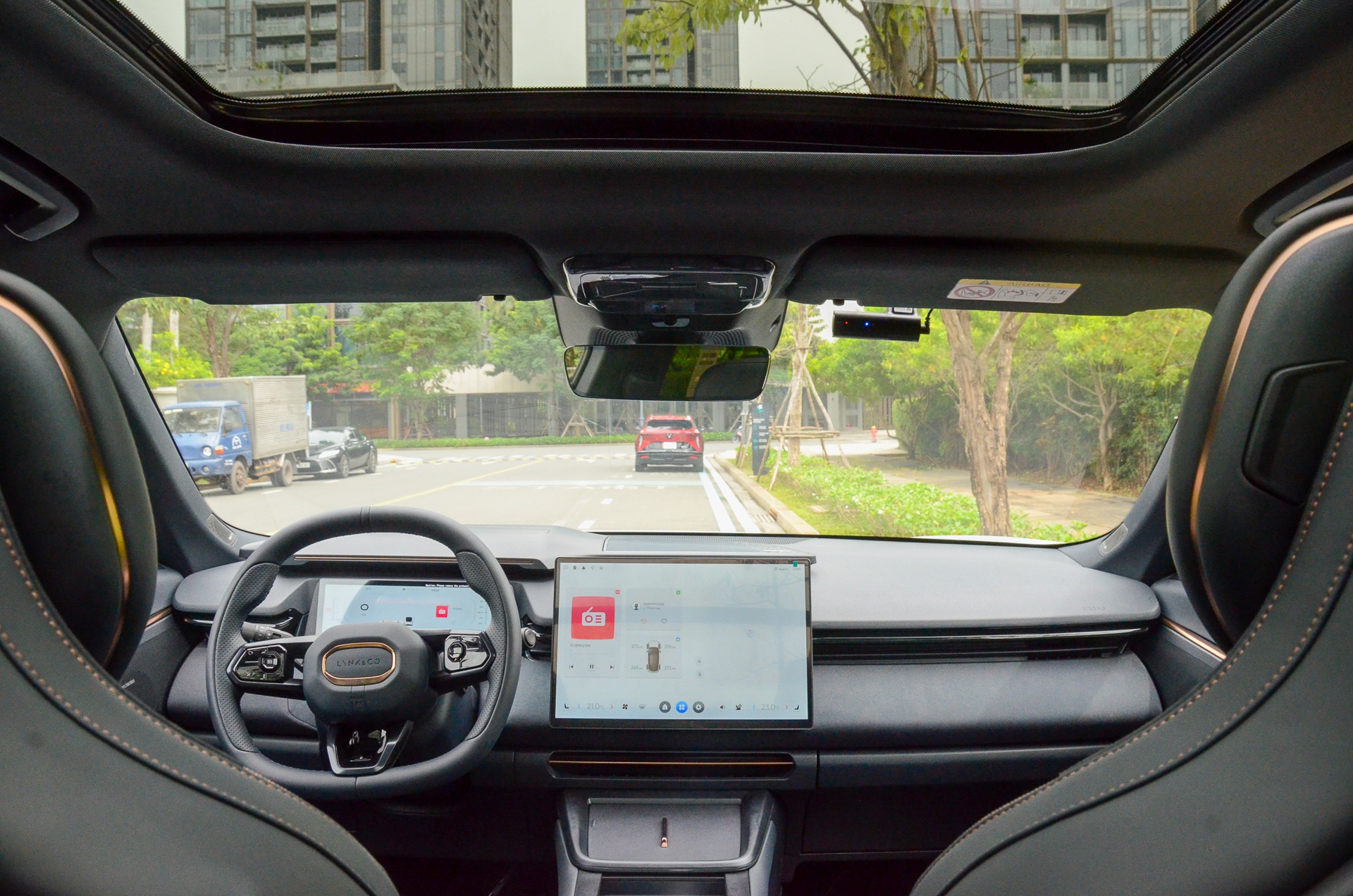 Khoang lái của Lynk & Co 08 là sự tối giản các phím bấm vật lý. Gần như toàn bộ thao tác đều được thực hiện qua màn hình cảm ứng trung tâm, có kích thước 15,4 inch với độ phân giải 2.5K.