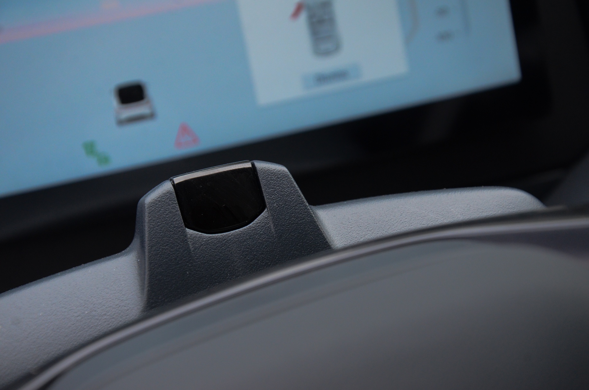 Trên vô lăng có trang bị cảm biến phục vụ hệ thống giám sát lái xe. Nằm sau vô lăng là cần số điện tử dạng thanh.