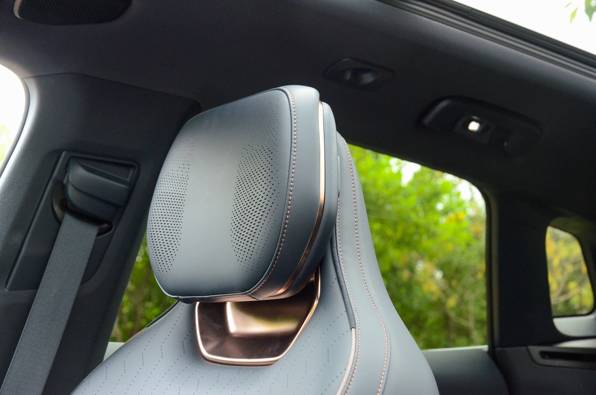 Khoang cabin Lynk & Co 08 trang bị hệ thống âm thanh Harman Kardon 23 loa, công suất 1.600 W, bao gồm loa tựa đầu ở hàng ghế trước.