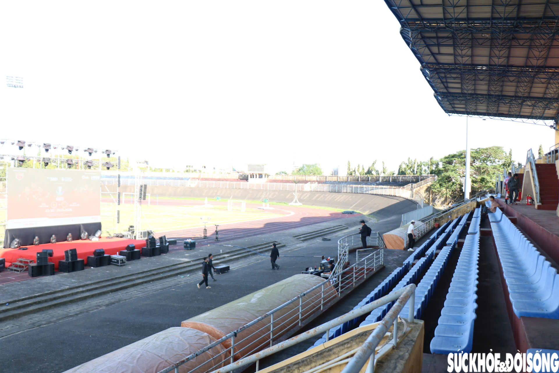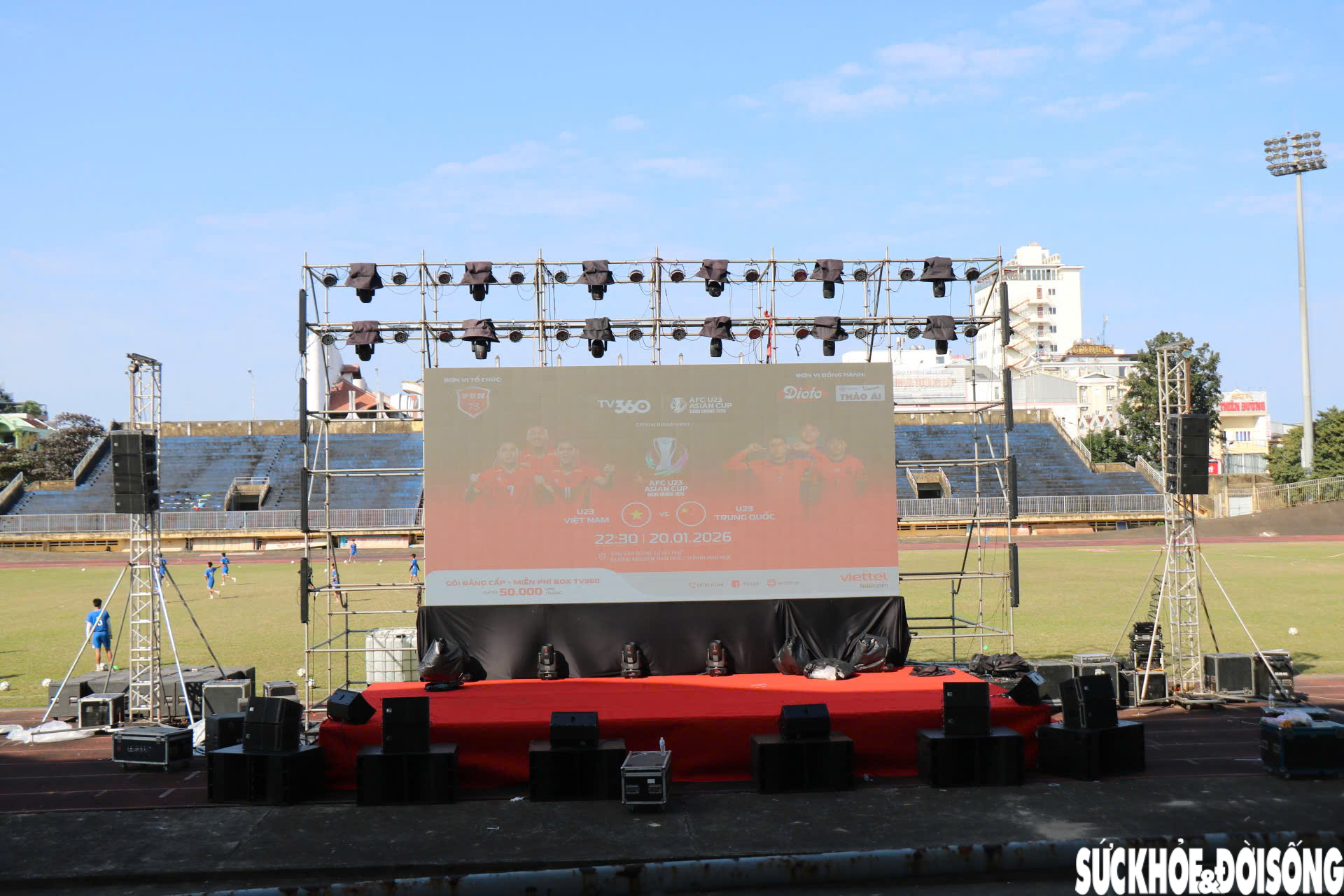 Đến thời điểm hiện tại, các đơn vị liên quan đang khẩn trương hoàn tất những công đoạn cuối cùng về kỹ thuật, hệ thống âm thanh, ánh sáng để sẵn sàng phục vụ người dân theo dõi trận đấu.