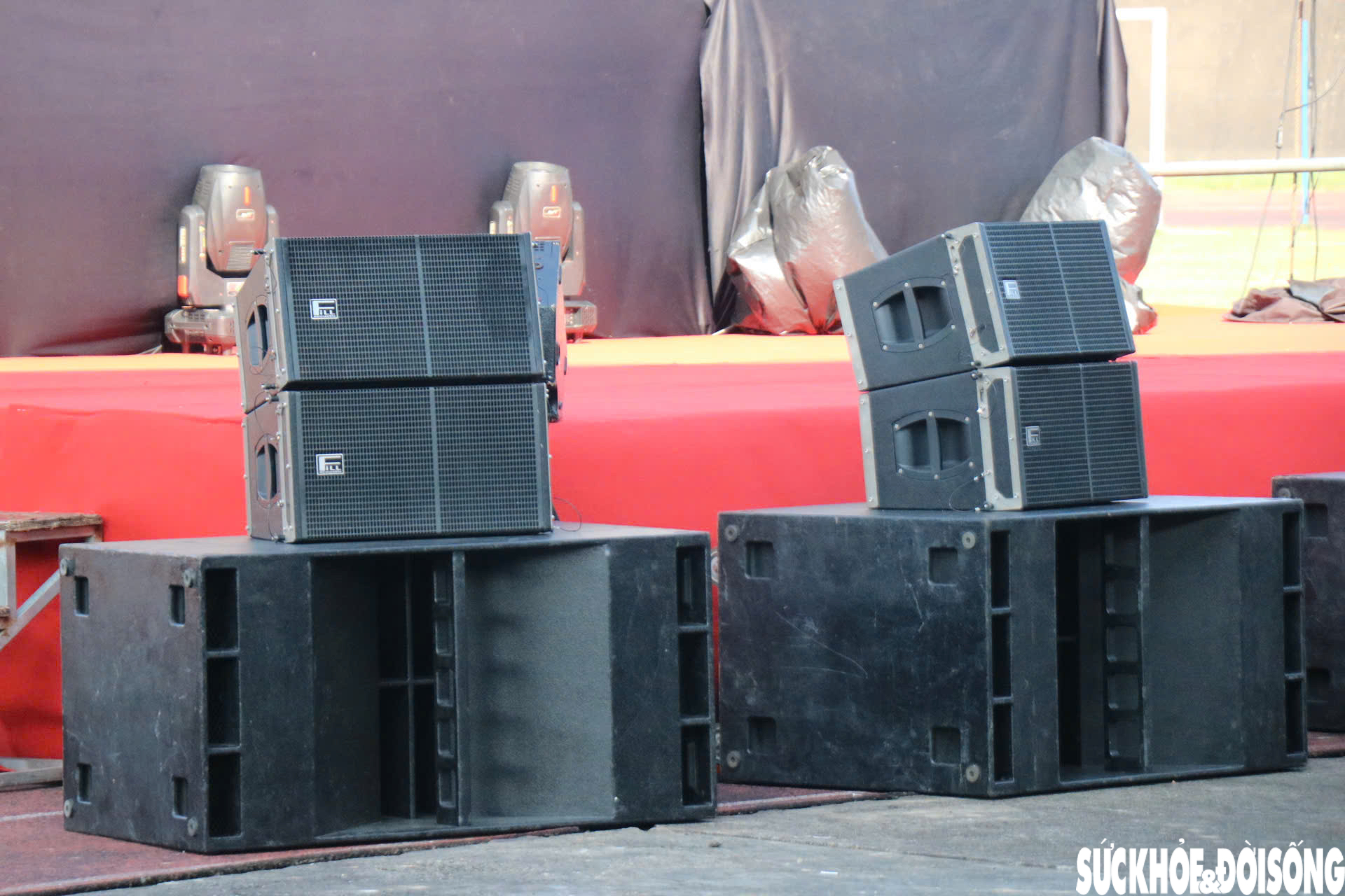 Hệ thống âm thanh với những chiếc loa cỡ lớn được lắp đặt hoàn tất.