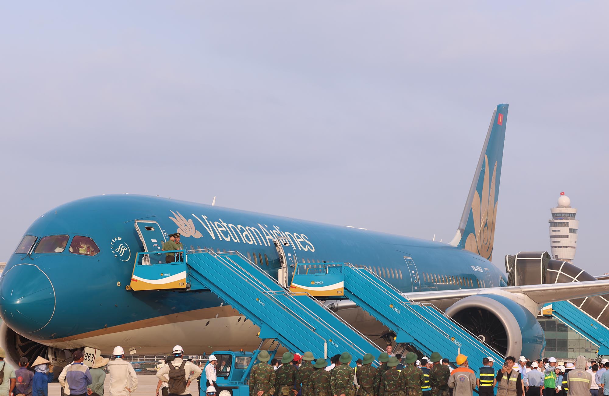 Boeing 787 được an ninh bảo vệ nghiêm ngặt tại Long Thành.