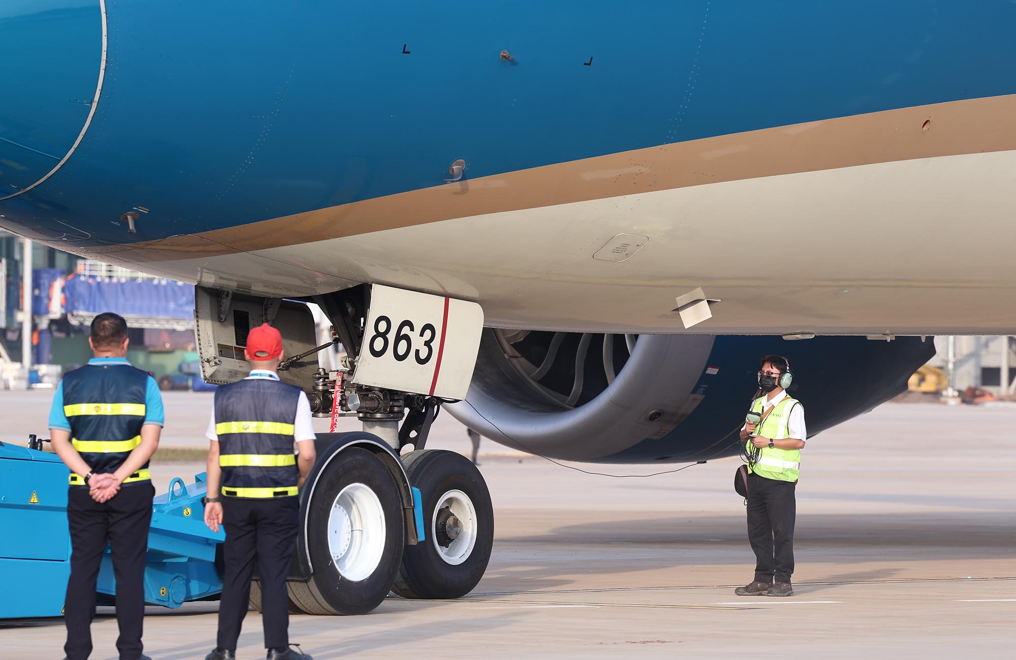 Phi hành đoàn bước xuống máy bay, hoàn thành chuyến bay kỹ thuật.