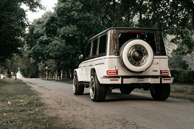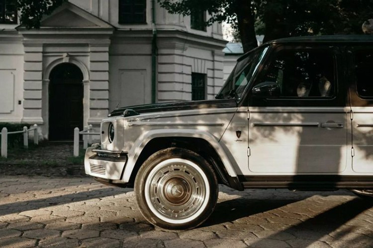 Ngoài lớp sơn đặc biệt, G63 Himalaya còn được trang bị bộ widebody kit mới với hốc bánh mở rộng, mâm hợp kim lấy cảm hứng cổ điển đi kèm lốp viền trắng, đây là chi tiết thường thấy trên xe sang của thập niên 1970.