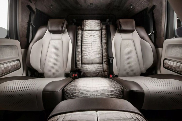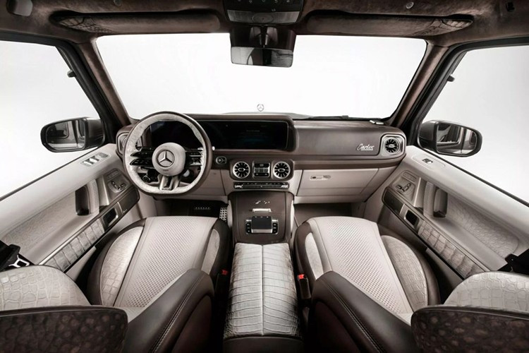 Nếu ngoại thất mang đến cảm giác “xa xỉ lấp lánh”, thì khoang cabin của G63 Himalaya lại là tác phẩm thủ công đỉnh cao. Carlex Design đã sử dụng loại da Himalaya trứ danh - chất liệu làm nên những chiếc túi Hermès Birkin có giá hàng trăm nghìn USD để bọc ghế trước và ghế giữa hàng sau.