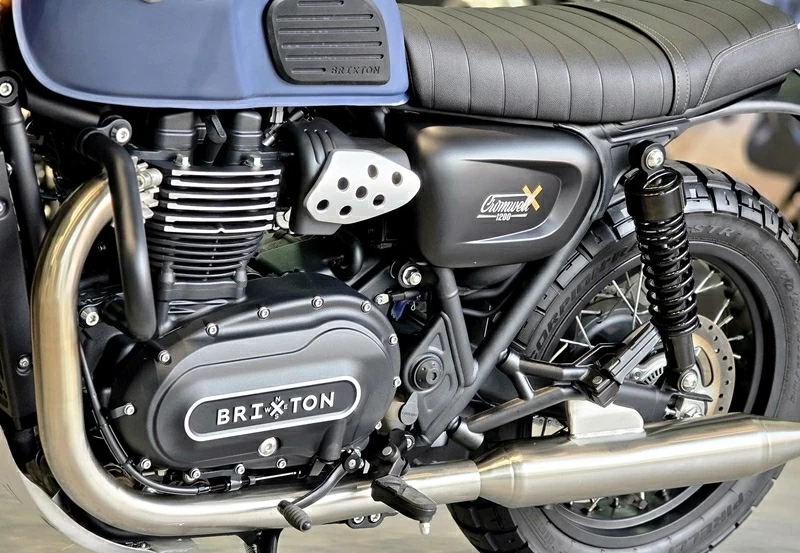 Sức mạnh của Cromwell 1200 2026 đến từ động cơ hai xi-lanh song song, làm mát bằng dung dịch, dung tích 1.222 cc. Khối động cơ này sản sinh 81 mã lực tại 6.550 vòng/phút và mô-men xoắn cực đại 108 Nm tại 3.100 vòng/phút, cho thấy Brixton đặt trọng tâm vào lực kéo sớm và dải tua thấp. Cách tinh chỉnh này hướng tới khả năng tăng tốc mượt mà, dễ kiểm soát và duy trì sự ổn định khi di chuyển đường dài, thay vì chạy theo những con số công suất tối đa.