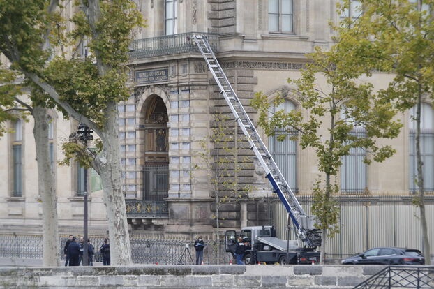 Le Parisien dẫn nguồn tin điều tra cho biết nhóm cướp mang theo cưa máy cỡ nhỏ, đi xe máy tiếp cận bảo tàng Louvre từ phía bờ sông Seine của tòa nhà, nơi có một số đoạn đang được tu sửa. Nhóm cướp dùng thang máy chở hàng đi thẳng đến phòng trưng bày Apollo, phá cửa kính bảo vệ, cho 2 người đột nhập vào bên trong và tên còn lại trông chừng bên ngoài. Ảnh: Reuters.