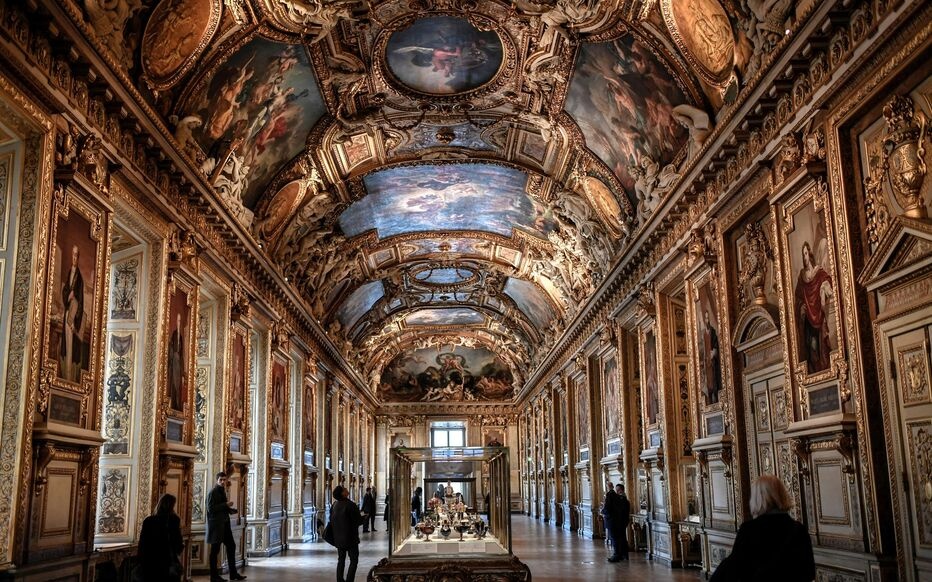 Quang cảnh phòng trưng bày Apollo, một trong những không gian tráng lệ nhất của Louvre, nổi tiếng với những bức tranh trần và chi tiết trang trí lộng lẫy, lưu giữ các bộ trang sức tuyệt mỹ từ thế kỷ XIX. Theo nguồn tin của Le Parisien, trong 9 hiện vật bị lấy đi có một bộ trang sức, một dây chuyền, đôi hoa tai, 2 vương miện và một chiếc trâm cài áo. Ảnh: Bảo tàng Louvre.