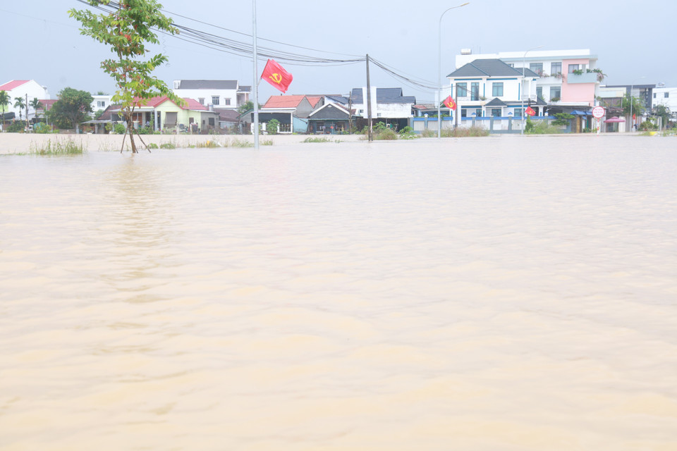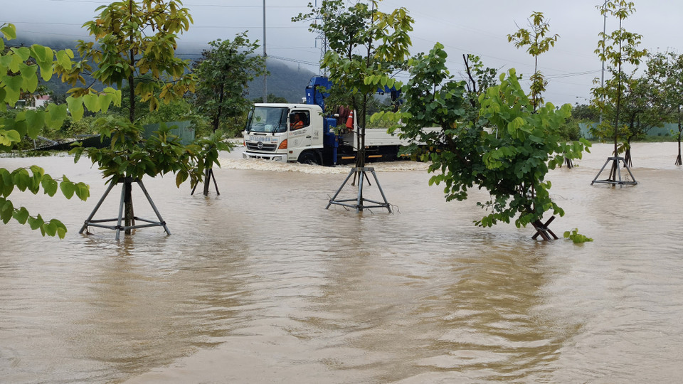 Nước lũ ngập sâu trên đường Võ Nguyên Giáp (xã Diên Khánh, Khánh Hòa). (Ảnh: Nguyễn Thành/TTXVN)