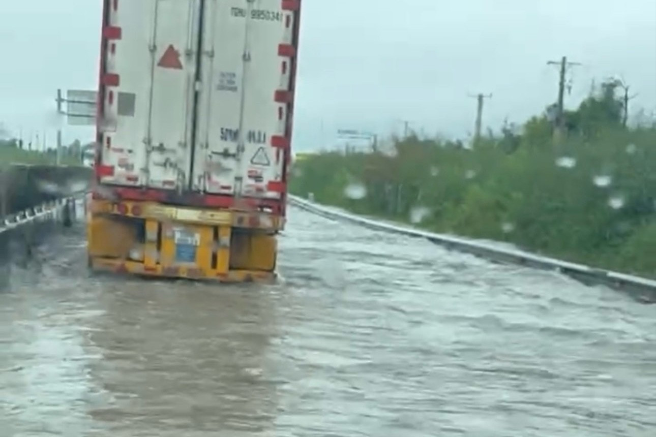 Sáng cùng ngày, một đoạn trên cao tốc Vĩnh Hảo - Phan Thiết bị ngập nước.
