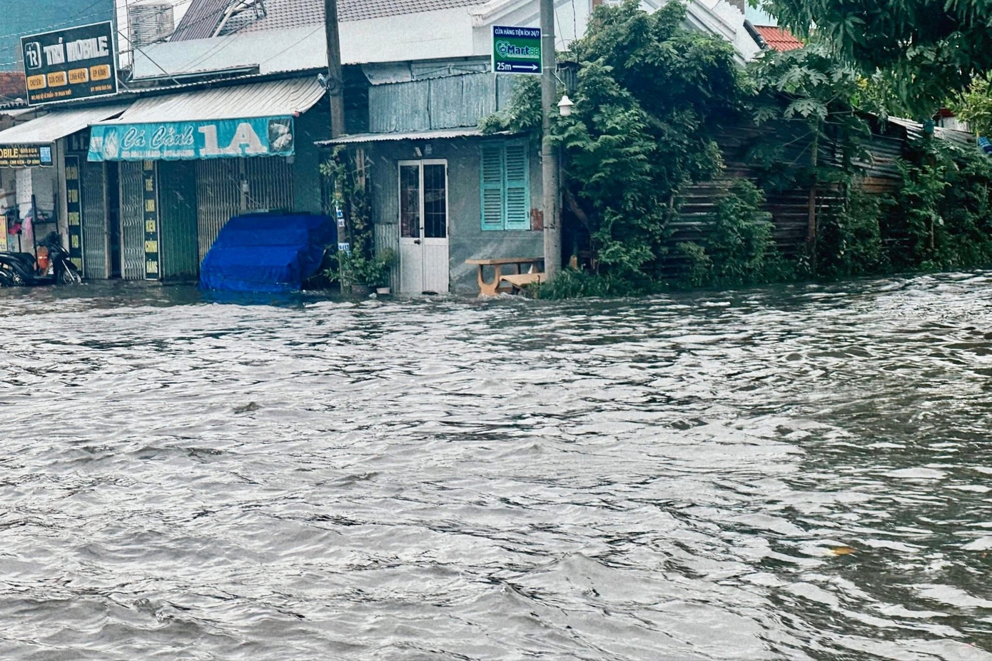 Ngày 30/10, Ban Chỉ huy Phòng thủ dân sự tỉnh Lâm Đồng cho biết: Từ ngày 27/10 đến nay, mưa lớn liên tục xảy ra trên địa bàn, với lượng mưa đo được tại Phước Hội 106,4mm, Tân Phước 105,8mm, Tân Tiến 43,6mm và Tân Đức 41,4mm... Hiện vẫn còn một số địa phương đang xảy ra tình trạng ngập lụt như: xã Hàm Thuận Bắc, Hàm Thuận, Hàm Liêm, Hàm Kiệm và Tuyên Quang. Trong ảnh: Nhiều khu vực trên địa bàn phường La Gi bị ngập cục bộ.