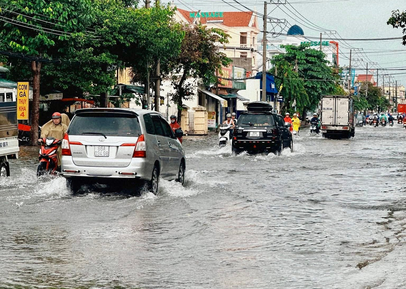 Nhiều tuyến đường ở phường Phan Thiết bị ngập cục bộ.