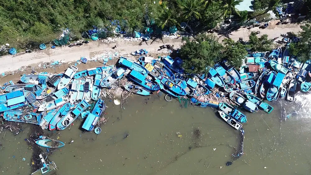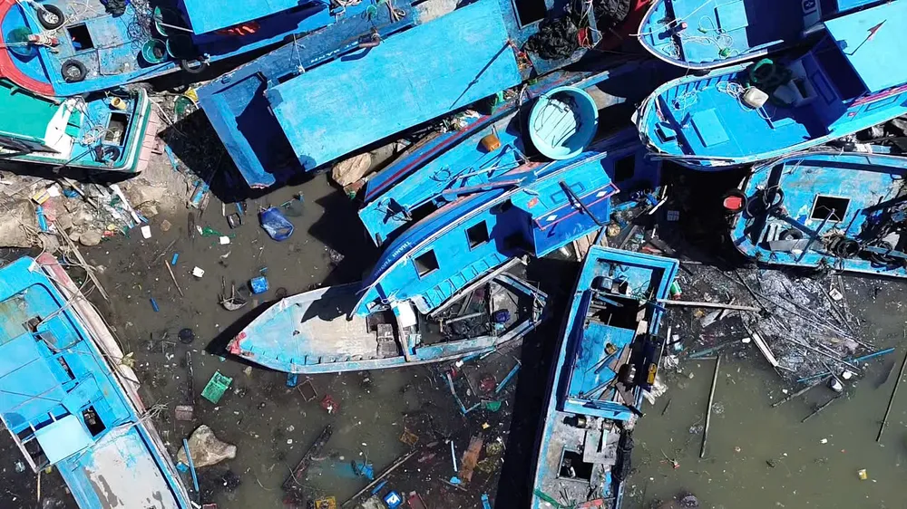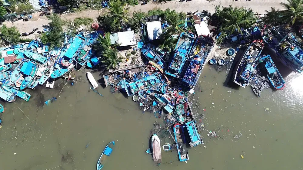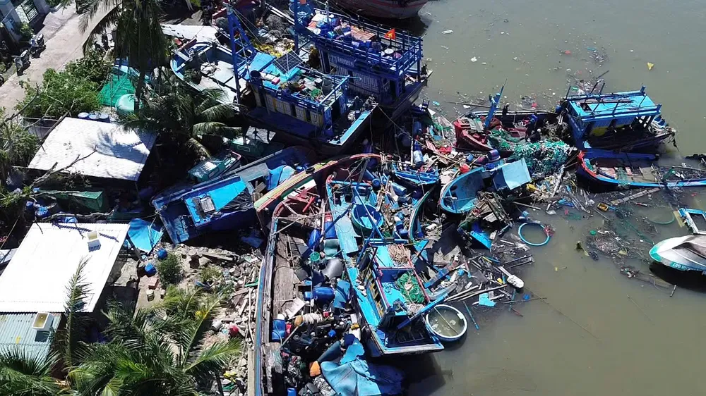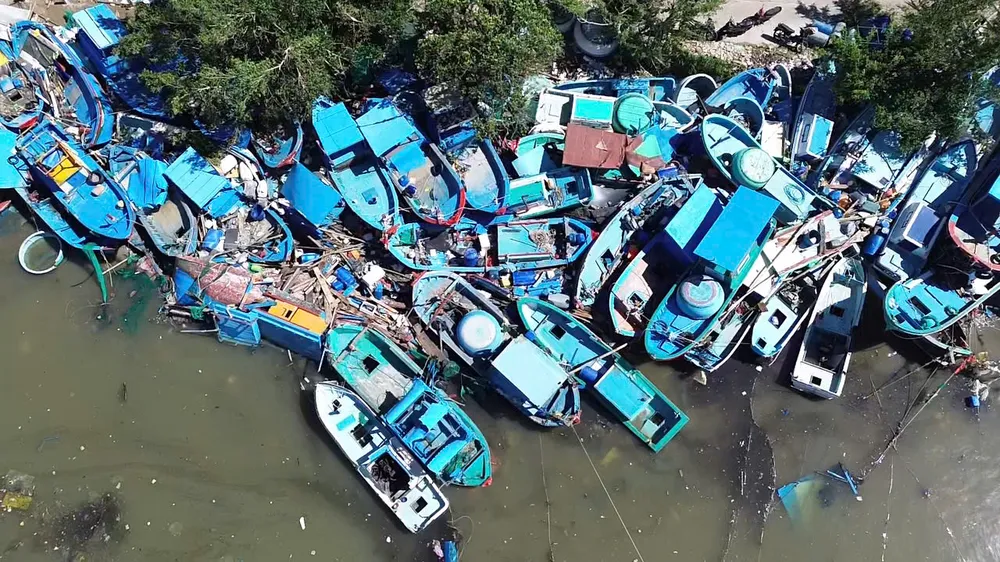 Theo ghi nhận, hàng trăm chiếc tàu bị sóng đánh vỡ nát, nằm chồng lên nhau.