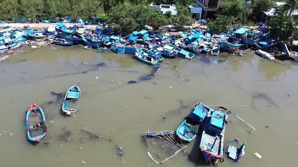 Một góc vịnh Xuân Đài thành "nghĩa địa" xác tàu sau bão số 13.