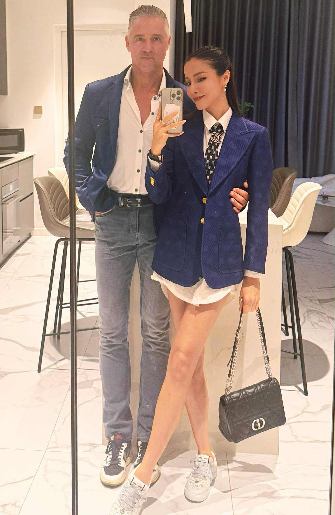 Sánh đôi bên bạn trai có ngoại hình nam tính, nữ diễn viên sinh năm 1986 thổ lộ cô cảm thấy bản thân nhỏ bé và luôn muốn nép vào anh. Dù chênh lệch gần 20 tuổi, cả hai nhận được nhiều lời khen ngợi về sự đẹp đôi từ bạn bè và người hâm mộ.