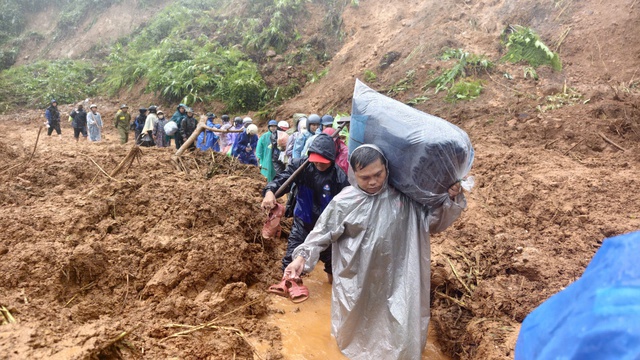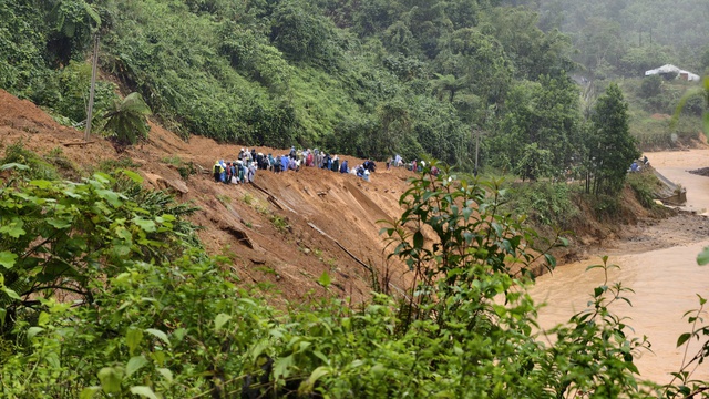 Họ phải cõng hàng đi bộ hơn 10 km trên các cung đường sạt lở