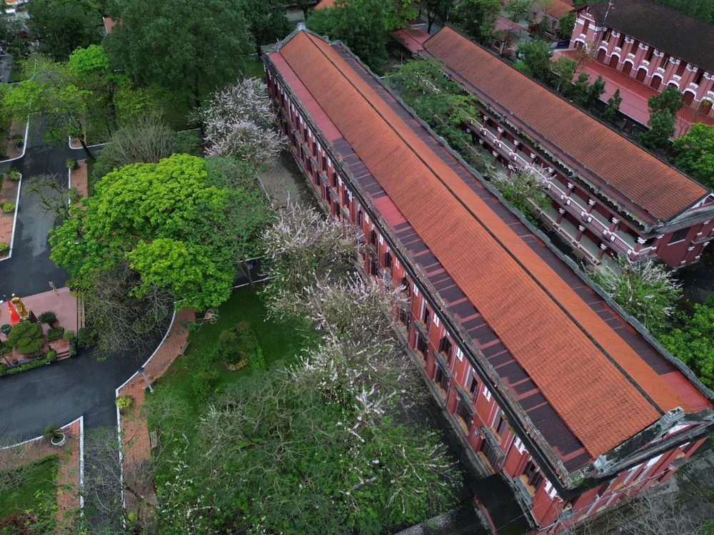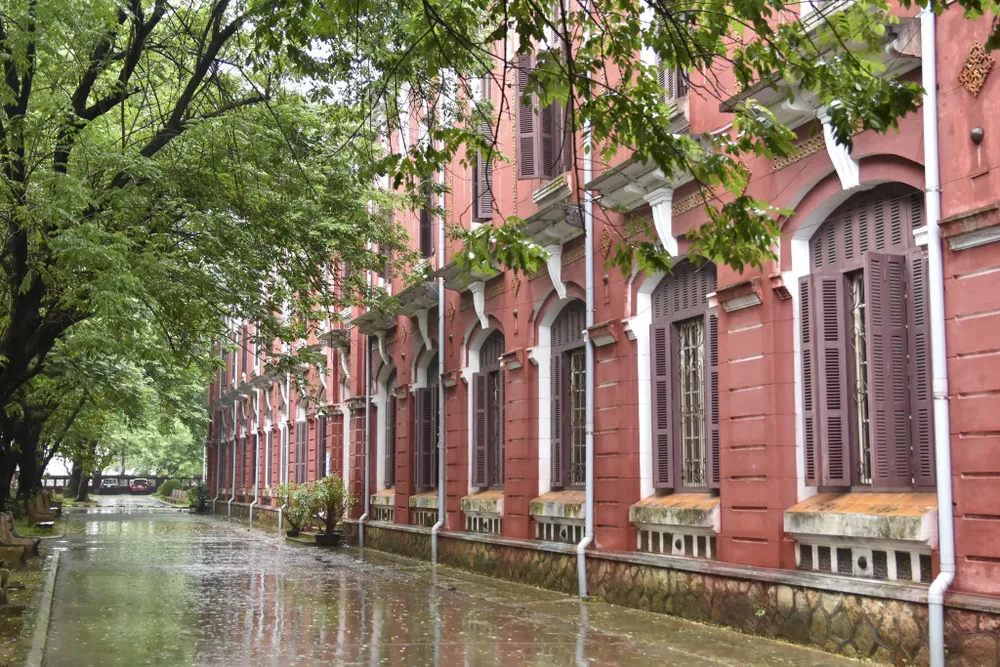 Trường THPT chuyên Quốc Học Huế (TP Huế), được xây dựng từ năm 1896, nổi bật với kiến trúc Pháp cổ kính bên dòng sông Hương. Đây là một trong những biểu tượng văn hóa và giáo dục lâu đời của vùng đất Cố đô. Ảnh: N.DO