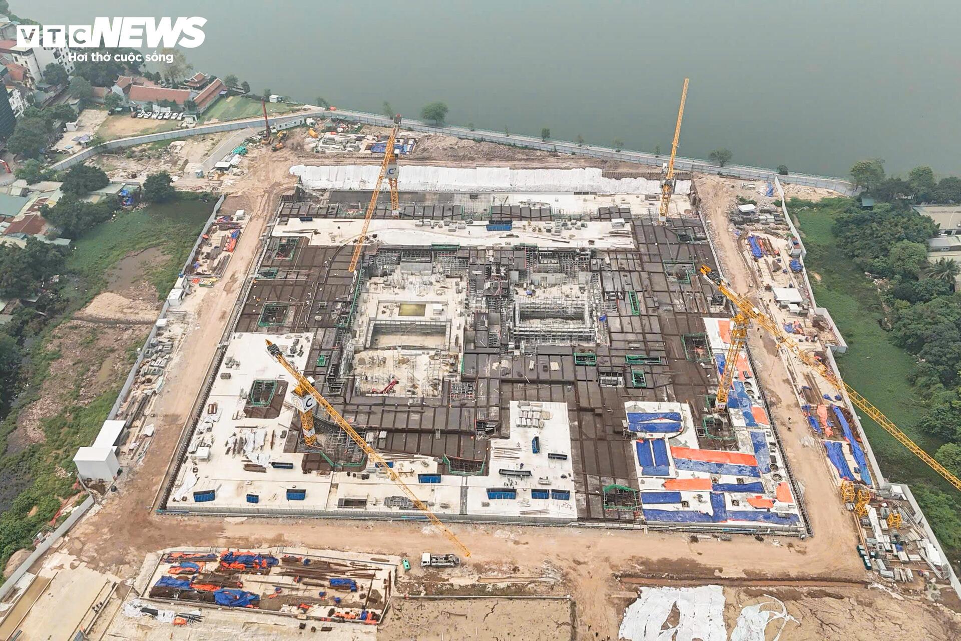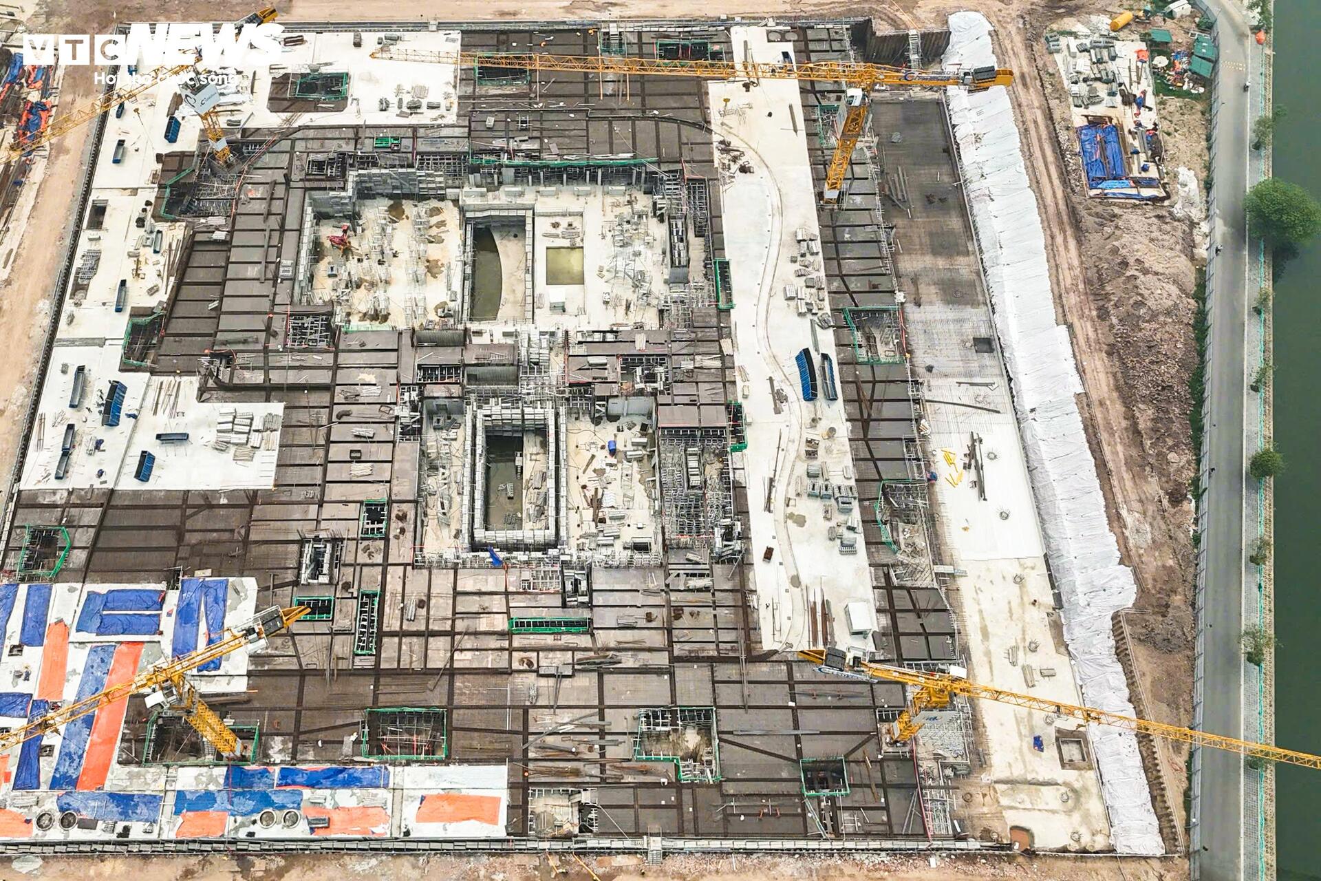 Ghi nhận sau khoảng 6 tháng triển khai, các hạng mục đầu tiên của giai đoạn 1 đang dần hình thành. Tại công trường, hàng trăm công nhân cùng nhiều máy móc được huy động để thi công phần nền móng và tầng hầm.
