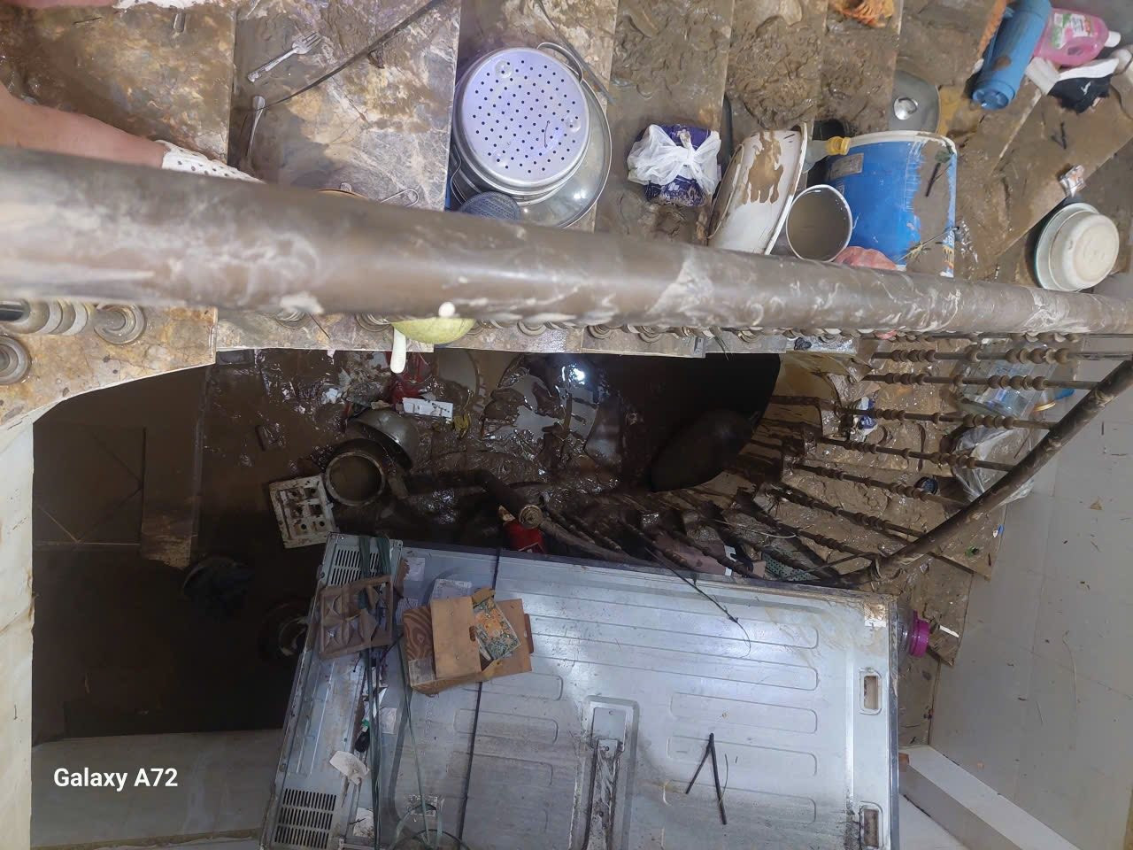 Những hình ảnh Nông Thúy Hằng đăng tải cho thấy căn nhà ngập trong bùn đất, nhiều vật dụng ở phòng khách, khu vực bếp và cầu thang bị tàn phá nghiêm trọng.