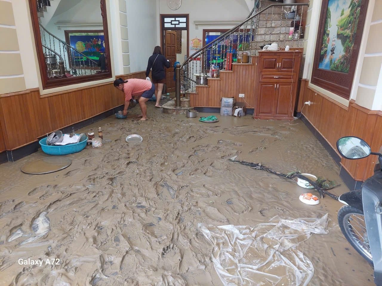 Nông Thúy Hằng cho biết do vị trí nhà giáp sông nên nước lũ lên nhanh gây ngập toàn bộ tầng âm và nửa tầng một. May mắn thời điểm lũ quét tràn qua, gia đình cô không có ai ở nhà, chỉ thiệt hại tài sản, vật chất.