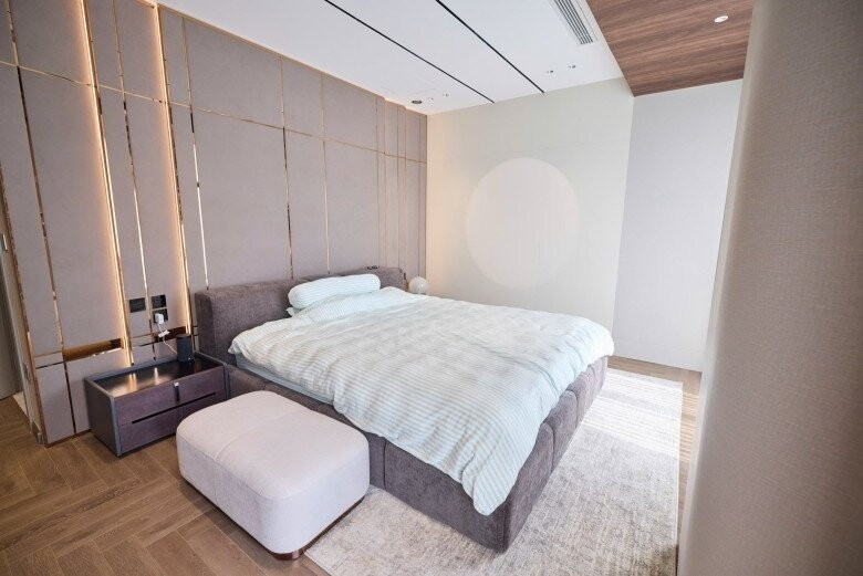 Tầng trên là khu vực riêng tư, gồm phòng ngủ chính, phòng thay đồ và phòng làm việc. Ảnh: FB Đoàn Văn Hậu