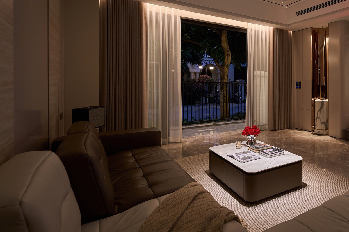 Hệ thống đèn âm trần và đèn hắt tường được lắp đặt khéo léo, vừa đảm bảo ánh sáng, vừa tạo hiệu ứng thị giác đẹp mắt. Ảnh: FB Đoàn Văn Hậu