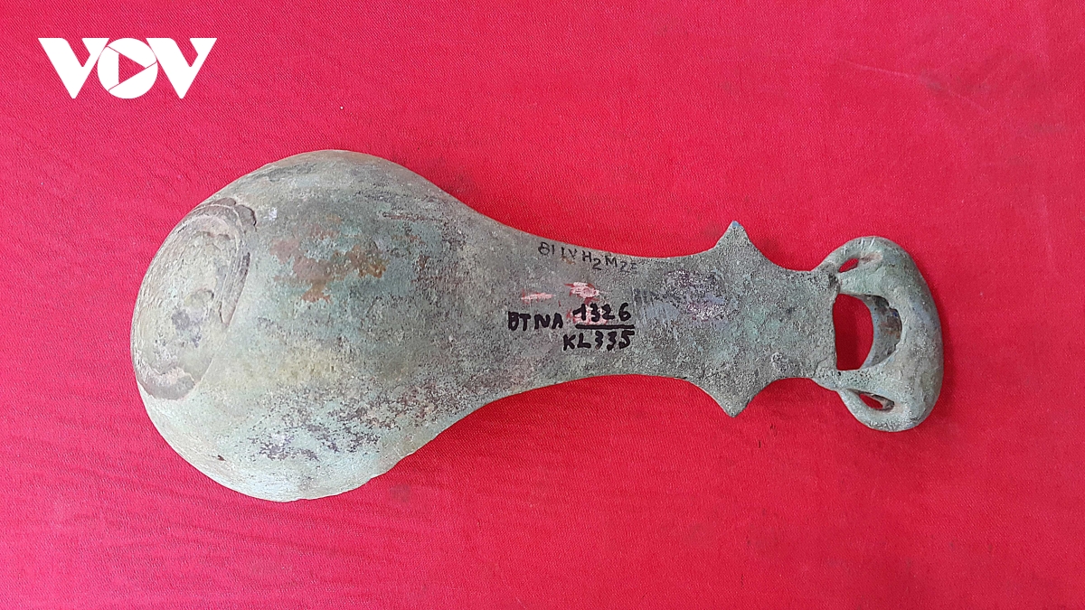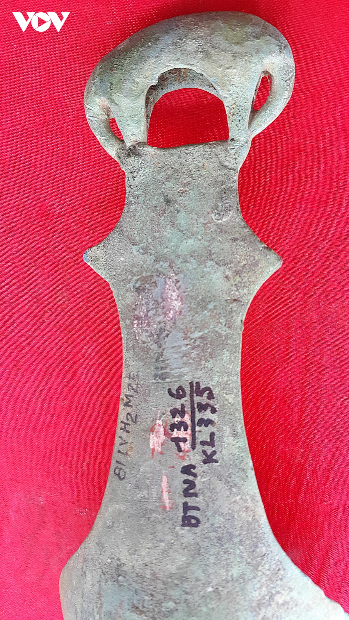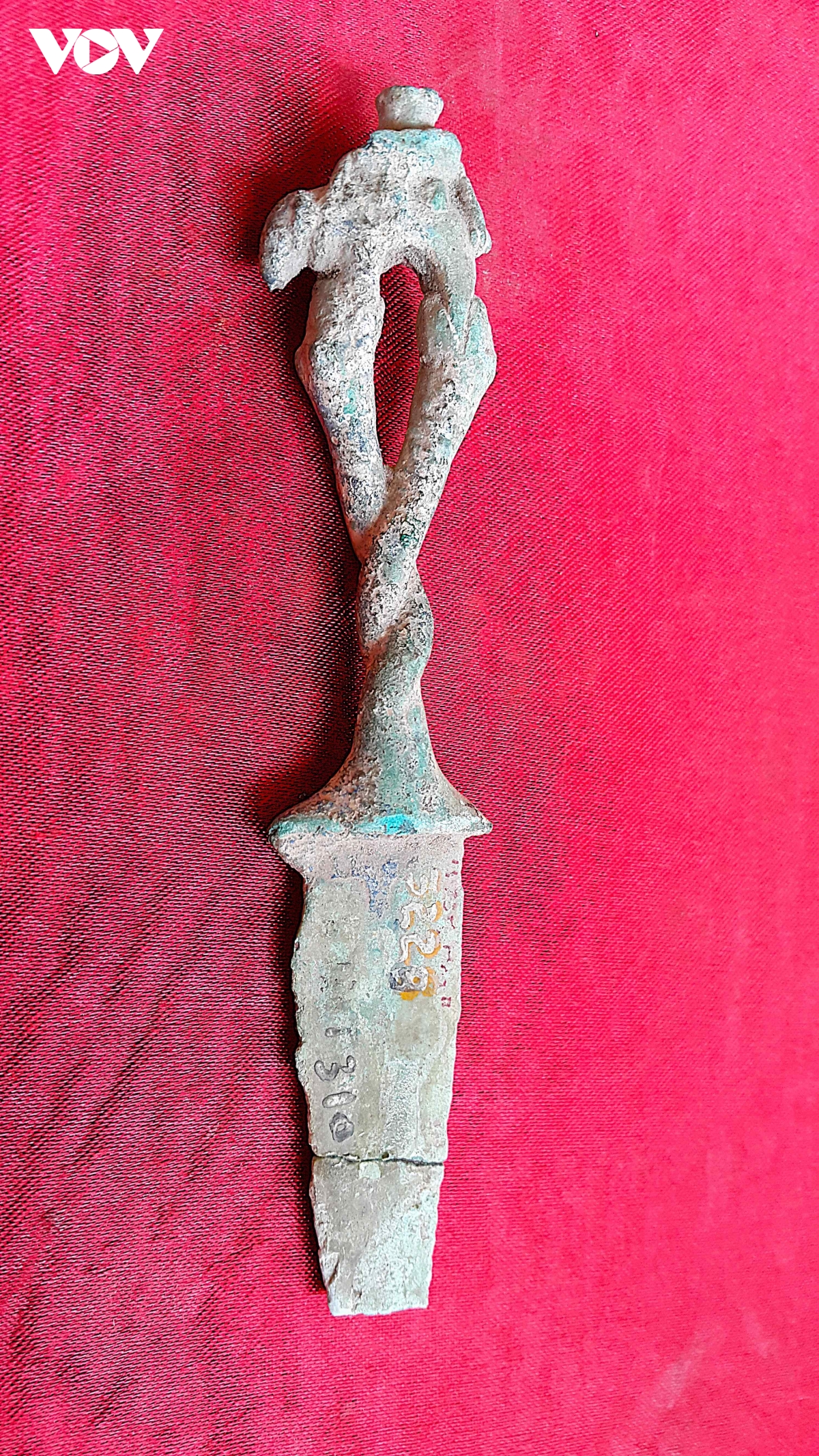 Các nhà nghiên cứu đánh giá đây là tác phẩm nghệ thuật độc đáo trong bộ sưu tập vũ khí bằng đồng thuộc văn hóa Đông Sơn, khẳng định Việt Nam là một trong những cái nôi của nền văn hóa Đông Sơn nổi tiếng thế giới. (Ảnh: Hải Chi).