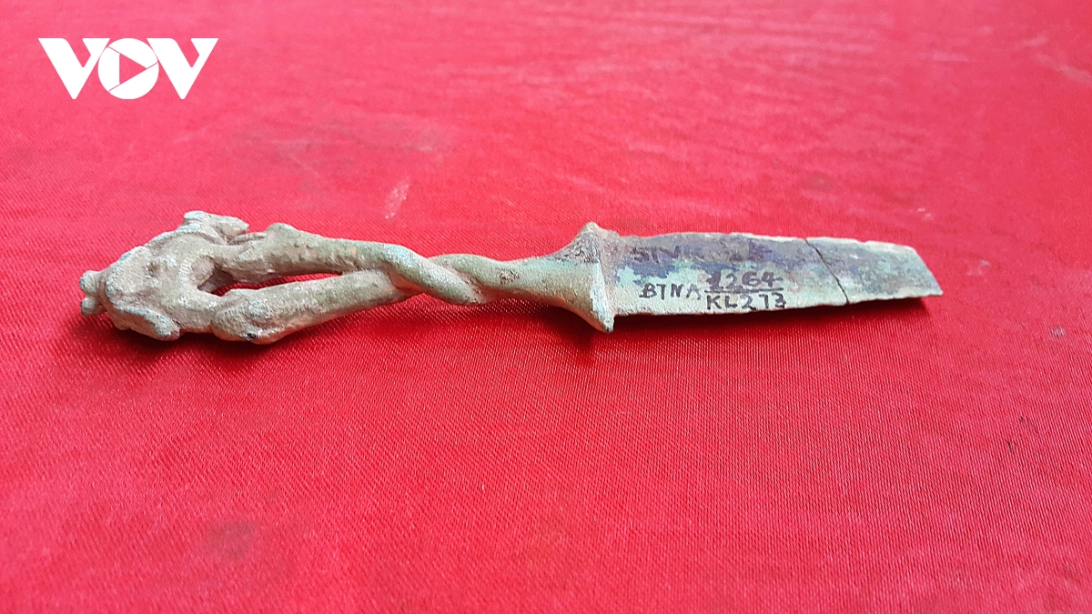 Bảo vật quốc gia khác mà Bảo tàng Nghệ An cũng lưu giữ là Dao găm chuôi hình rắn ngậm chân voi. Con dao được tìm thấy trong đợt khai quật lần thứ nhất năm 1973 tại di chỉ làng Vạc (huyện Nghĩa Đàn cũ, tỉnh Nghệ An), đến năm 2017 được công nhận bảo vật quốc gia. Tác phẩm nằm trong bộ sưu tập vũ khí bằng đồng thuộc văn hóa Đông Sơn. (Ảnh tư liệu).