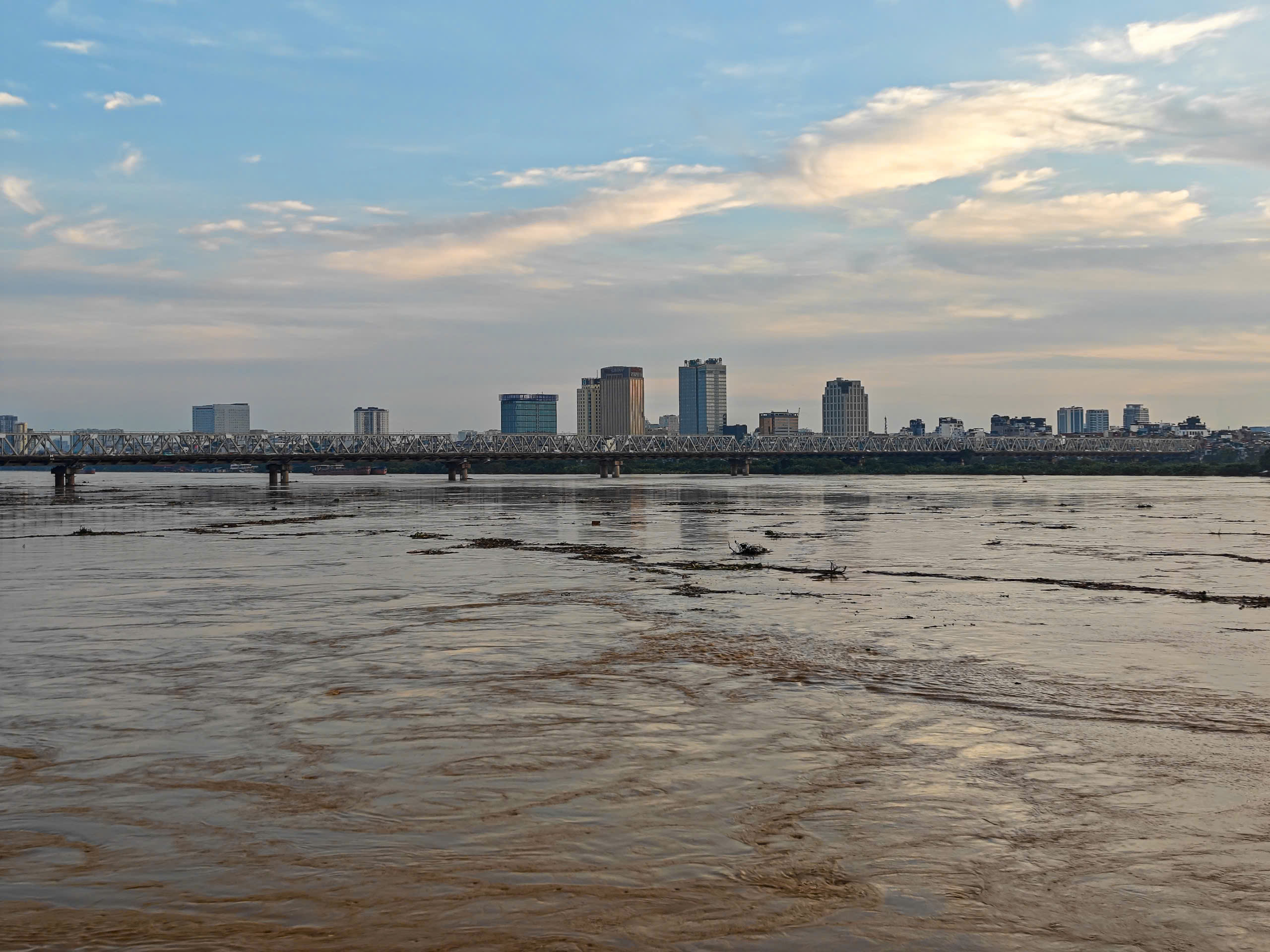 Nước trên sông Hồng chảy xiết tạo ra nhiều xoáy nước có thể gây sạt lở bờ sông, cuốn trôi đất đai và uy hiếp tài sản, tính mạng của người dân sống ven sông