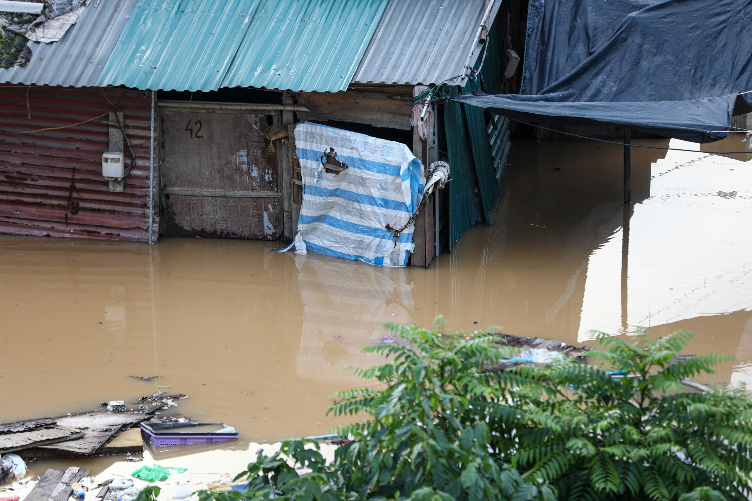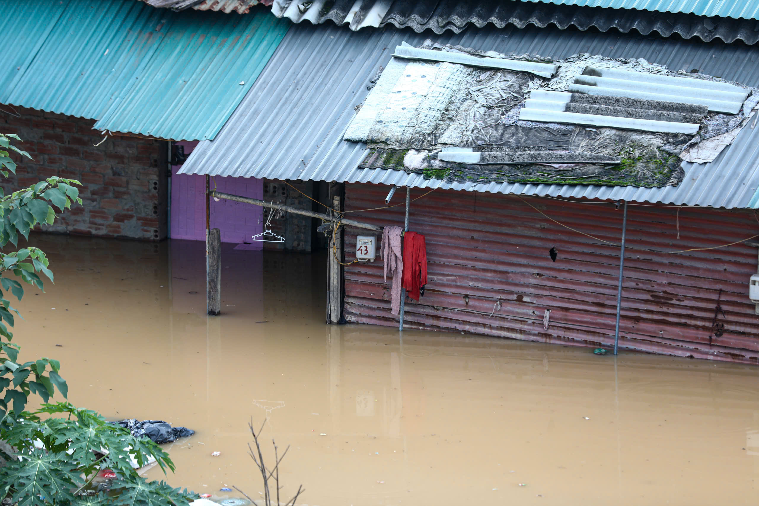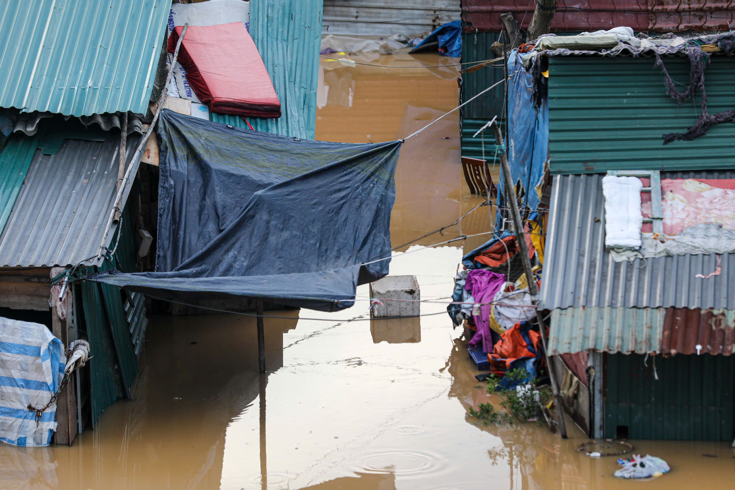 Khu xóm trọ tạm phía sau chợ Long Biên bị ngập lụt gây ảnh hưởng nghiêm trọng