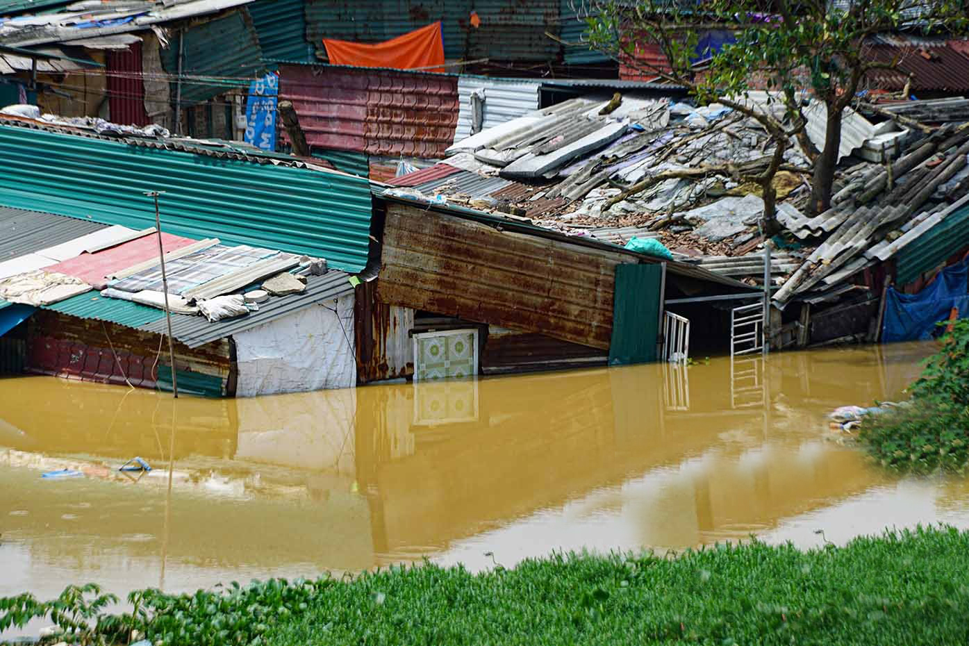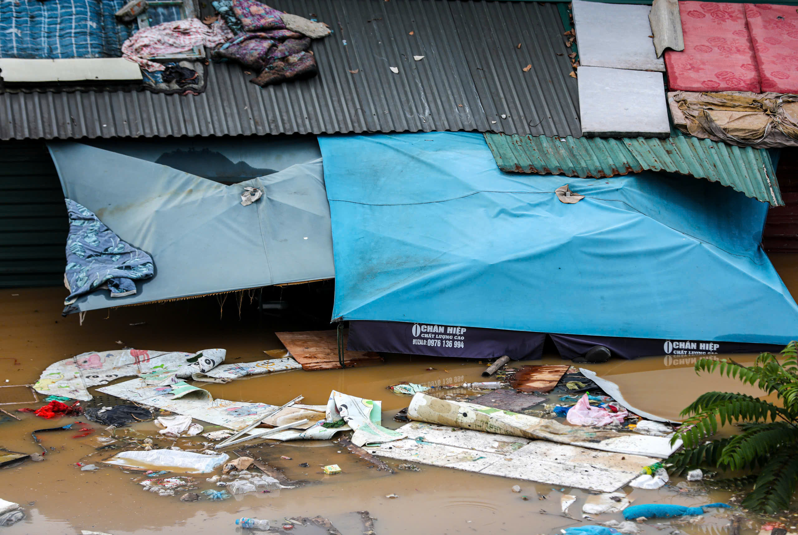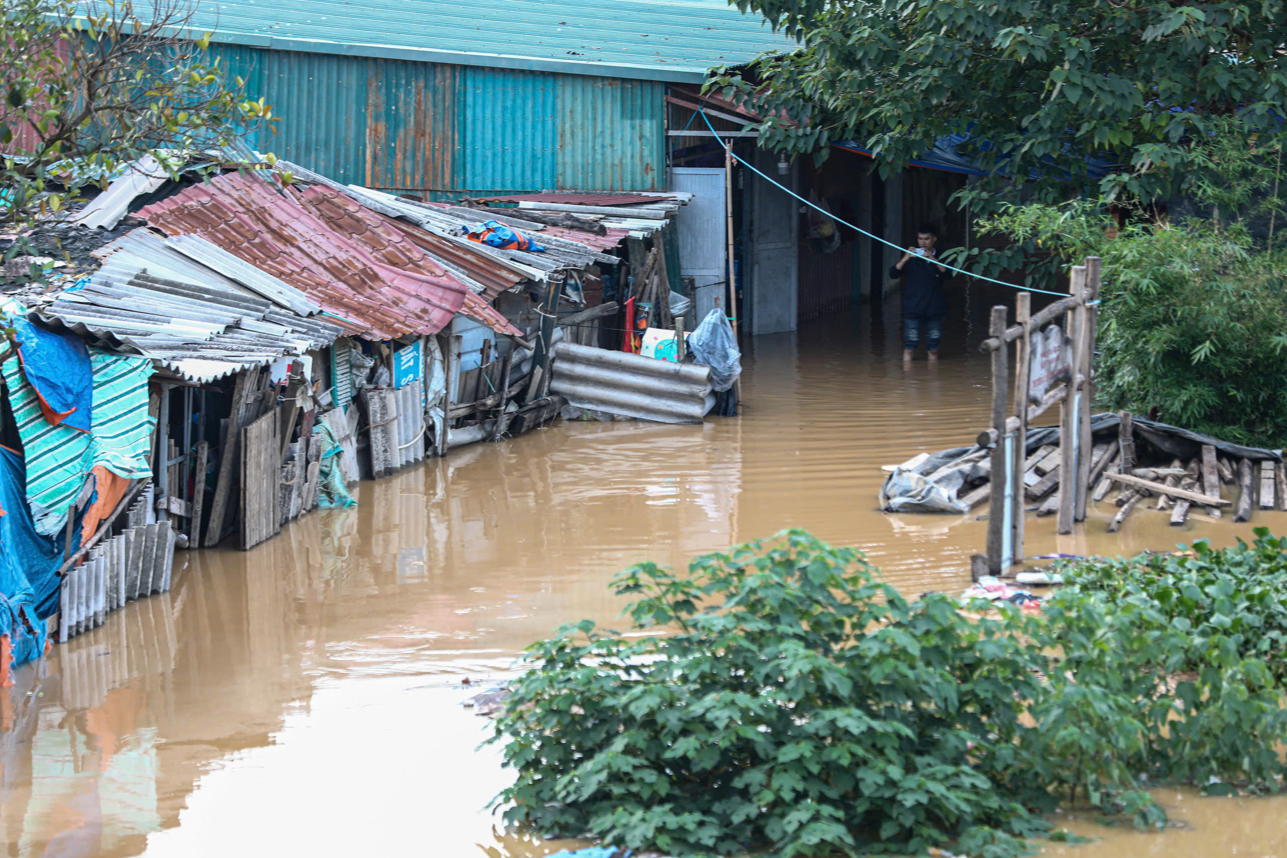 Khu xóm trọ tạm phía sau chợ Long Biên bị ngập lụt gây ảnh hưởng nghiêm trọng