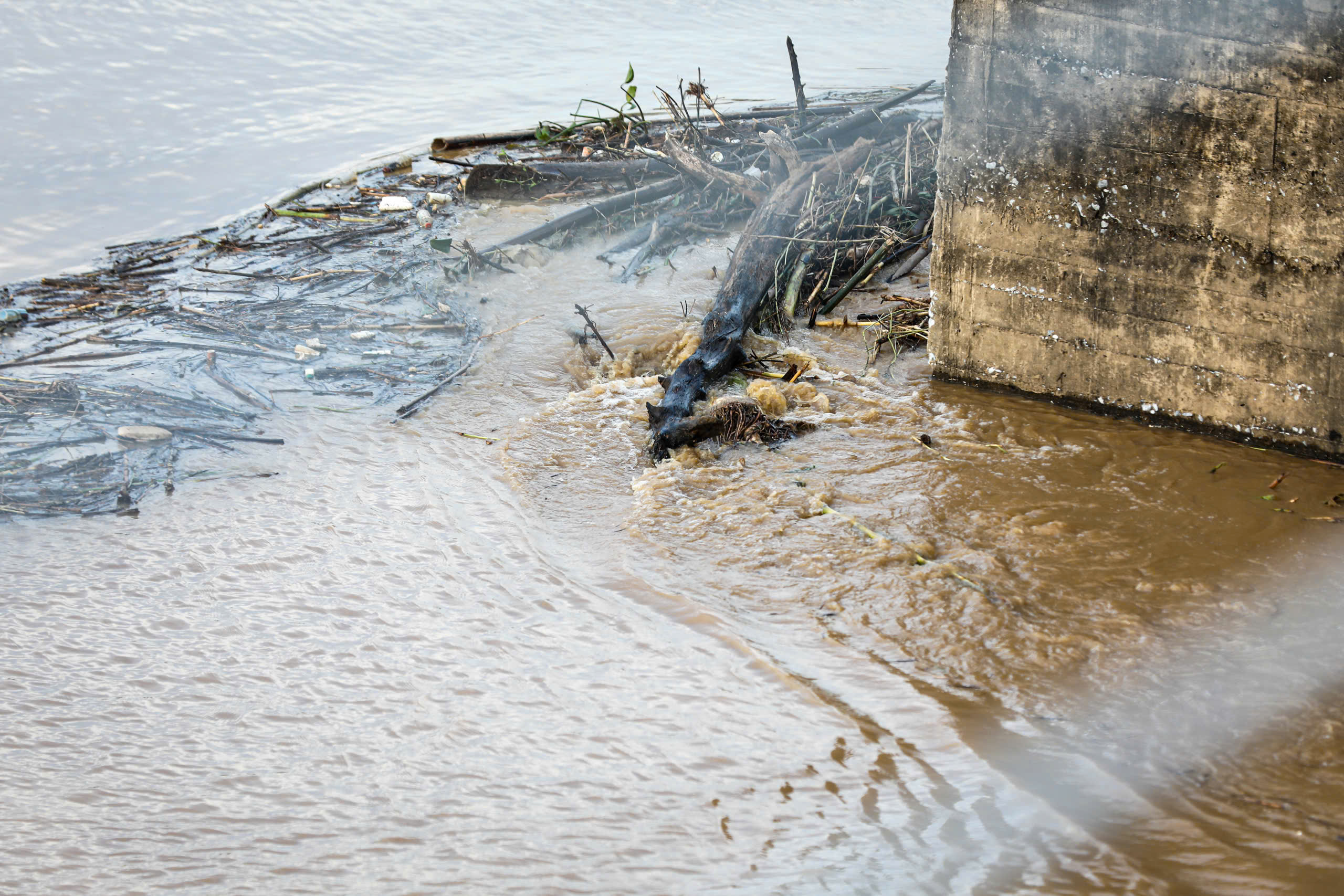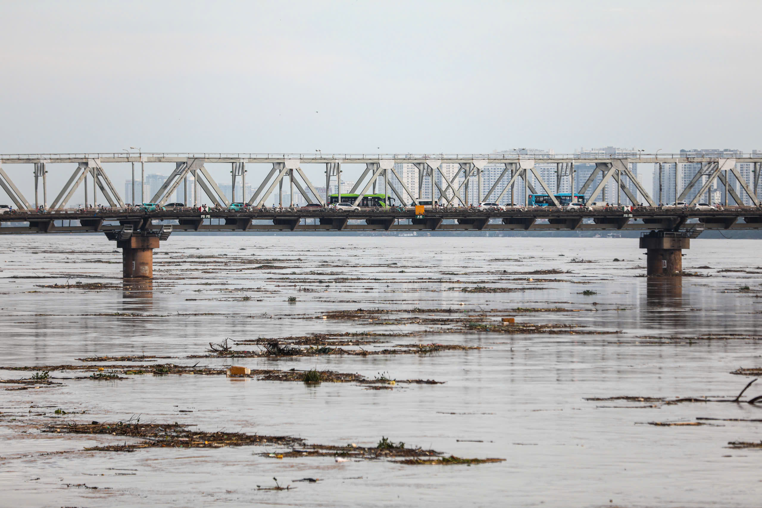 Dòng lũ từ thượng nguồn đổ về không chỉ nhấn chìm nhà cửa, vườn tược mà còn kéo theo những cành cây và rác thải trôi dạt khắp mặt sông - tạo thành mối nguy tắc nghẽn, ô nhiễm và làm ảnh hưởng tới đời sống sinh hoạt, sản xuất của các khu dân cư ven sông