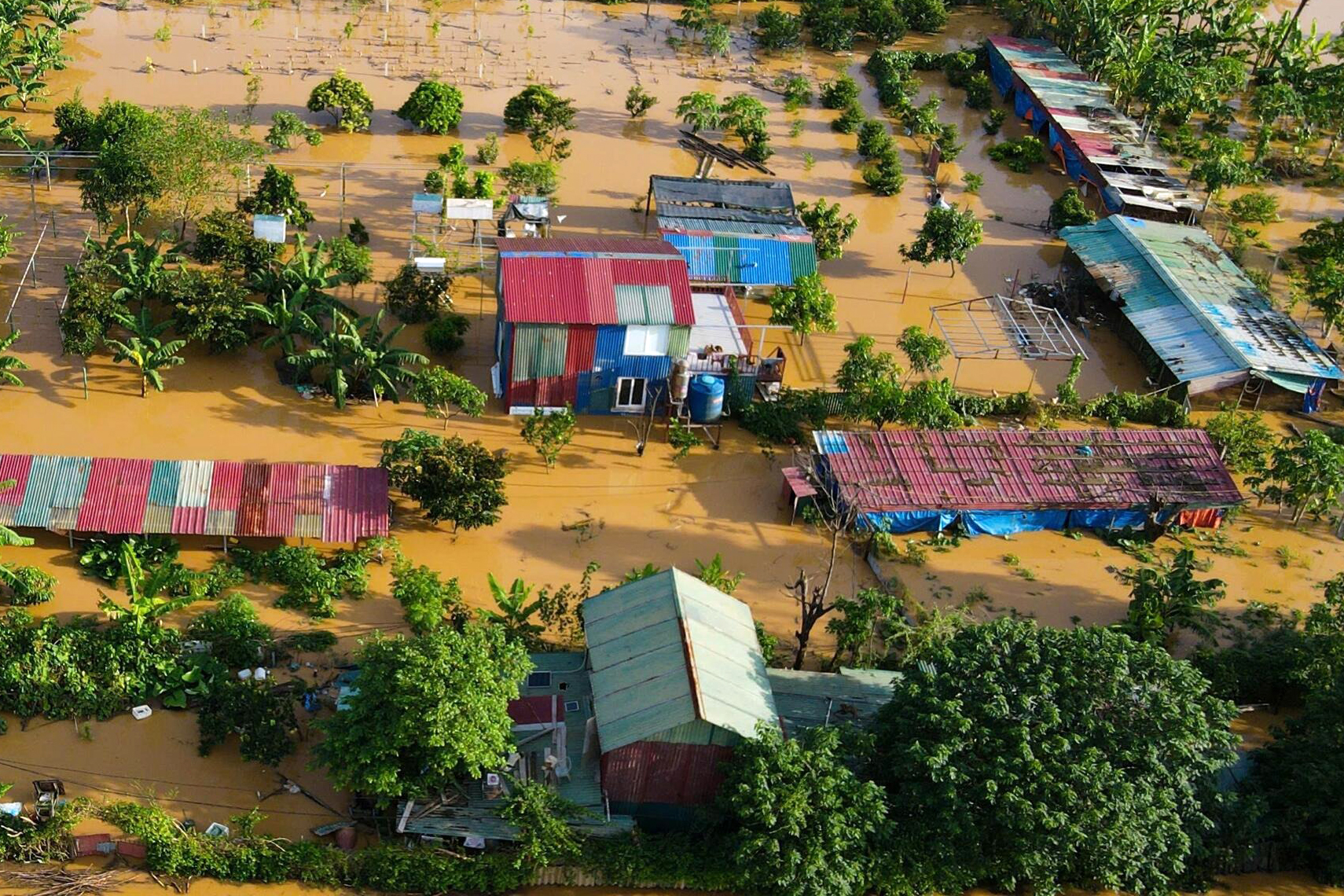 Nước lũ dâng bao quanh những ngôi nhà của người dân nơi đây