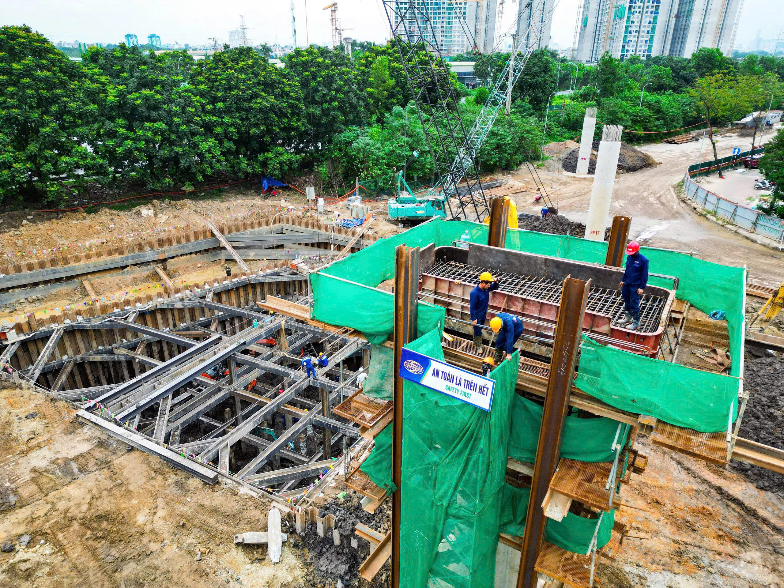 Tại phía Quốc lộ 32, phần hầm hở cũng đang được thi công song song. Ban Quản lý Dự án Đầu tư Xây dựng Công trình Dân dụng Hà Nội cho biết, đến nay dự án đã hoàn thành hơn 40% khối lượng theo hợp đồng, bám sát tiến độ, phấn đấu hoàn thành trong năm 2026.